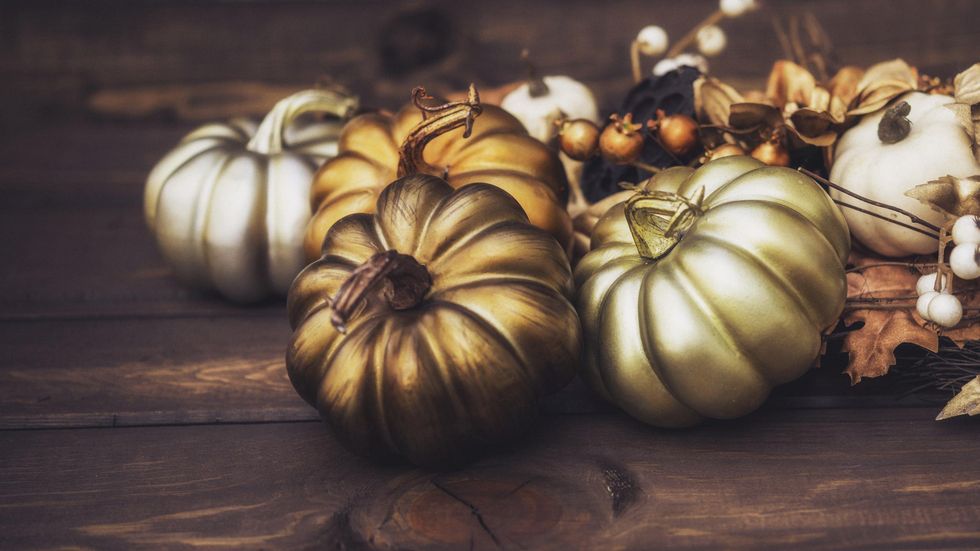 C'mon. We all know what the signature fruit for fall is — the pumpkin. One day, we'll have to get into the whole "which is better?" debate — pumpkin or sweet potato pie. For now, let me stay on topic and just say that whether or not you adore the taste of pumpkin, it can be cute to have some pumpkin-shaped ideas to decorate your house. Arts and crafts stores (along with places like Walmart and Target) typically have pumpkin stuff. If you think that the orange ones are a little too "country" or even corny, look for metallic ones instead. I saw some on Grandin Road's website that I thought were pretty dope (check it out here).