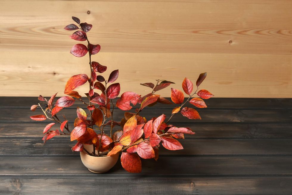 If you'd like to have more of a nature-like feel, how about going with some faux foliage that comes in autumn colors like yellow, orange and red? Listen, I've got a nice sized fake tree in my bedroom and it's one of the best things I've ever purchased.