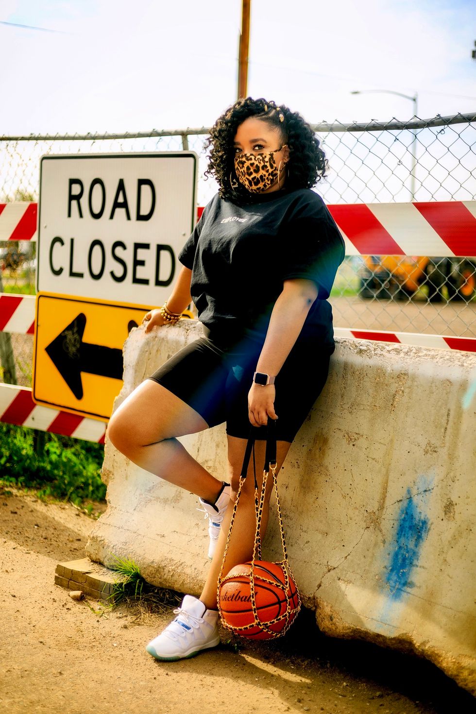 I just added this beauty to my arsenal during my 'binge shopping in quarantine phase.' My new basketball bag lives at the intersection of style and sports. I am not a sports buff by any means; I can barely keep up with the a basketball game. But you can't deny the outright dopeness of this bag. I wore it out to run errands and I received so many compliments. Because I was going for a sporty chic look, I donned my favorite black tee, comfy biking shorts and Jordans to really play the part.