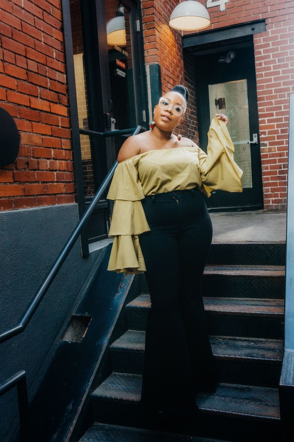 Playing with shapes, I coupled this off-the-shoulder, bell sleeved top with the 1988 Uber-Flare Denim. I love how the similar silhouettes create a harmonious getup. This marrying of figures is ultimately strategic; it is gracious to all body types and emphasizes my curves effortlessly.