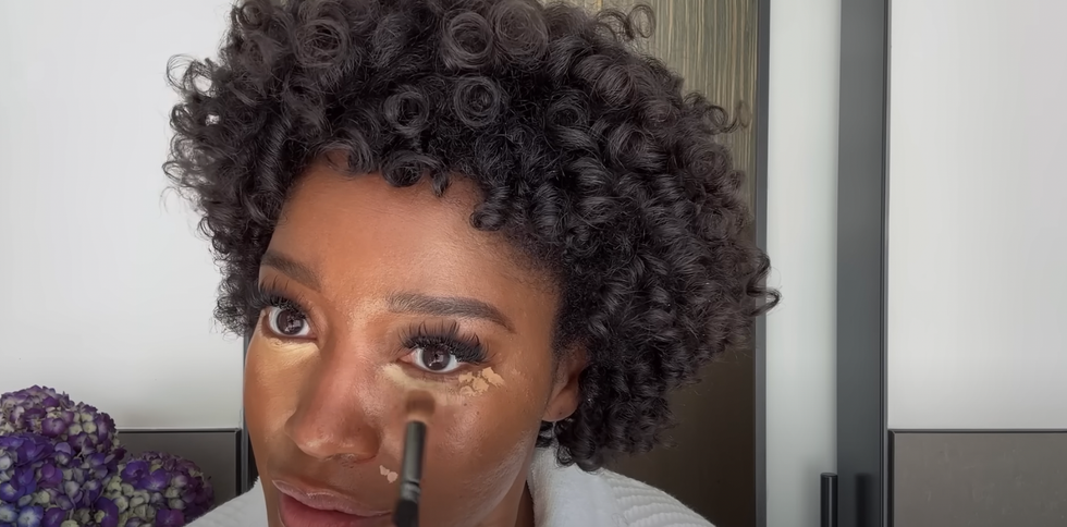 - Base: Applies Estee Lauder Double Wear foundation and NARS concealer for a light, highlighted finish.