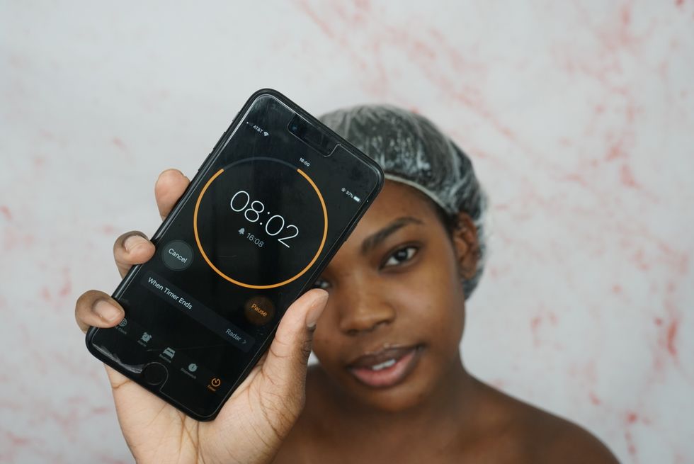 Comb through hair to remove any knots with the Tangle Teezer Mint & Lilac Ultimate Detangler and wrap your hair with a plastic cap for 10 minutes.