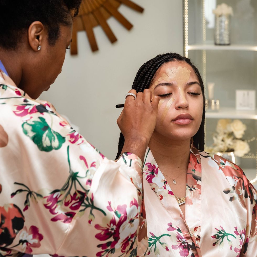 Makeup artist Mesha Thomas beating Arielle's face.