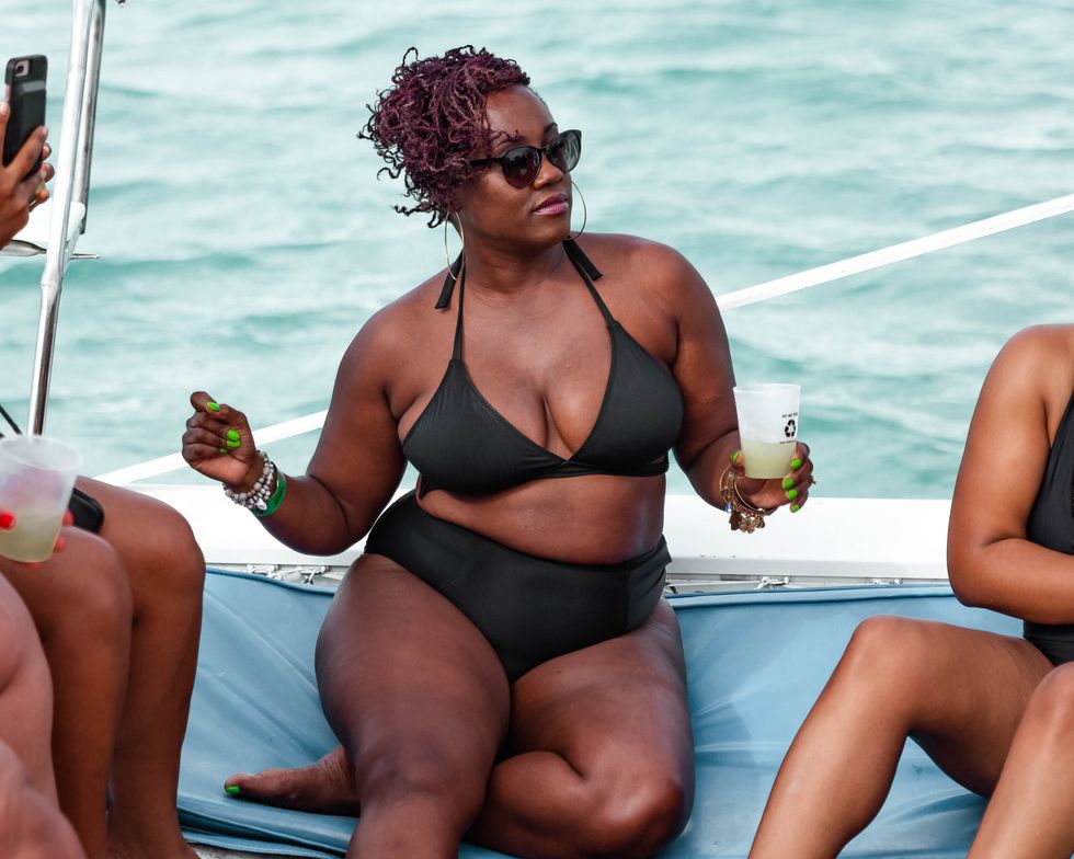 Nakesa Smith, Felicia Leatherwood, and Shaniqua Garrett strutting their stuff on the white-sand beach.