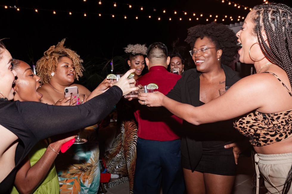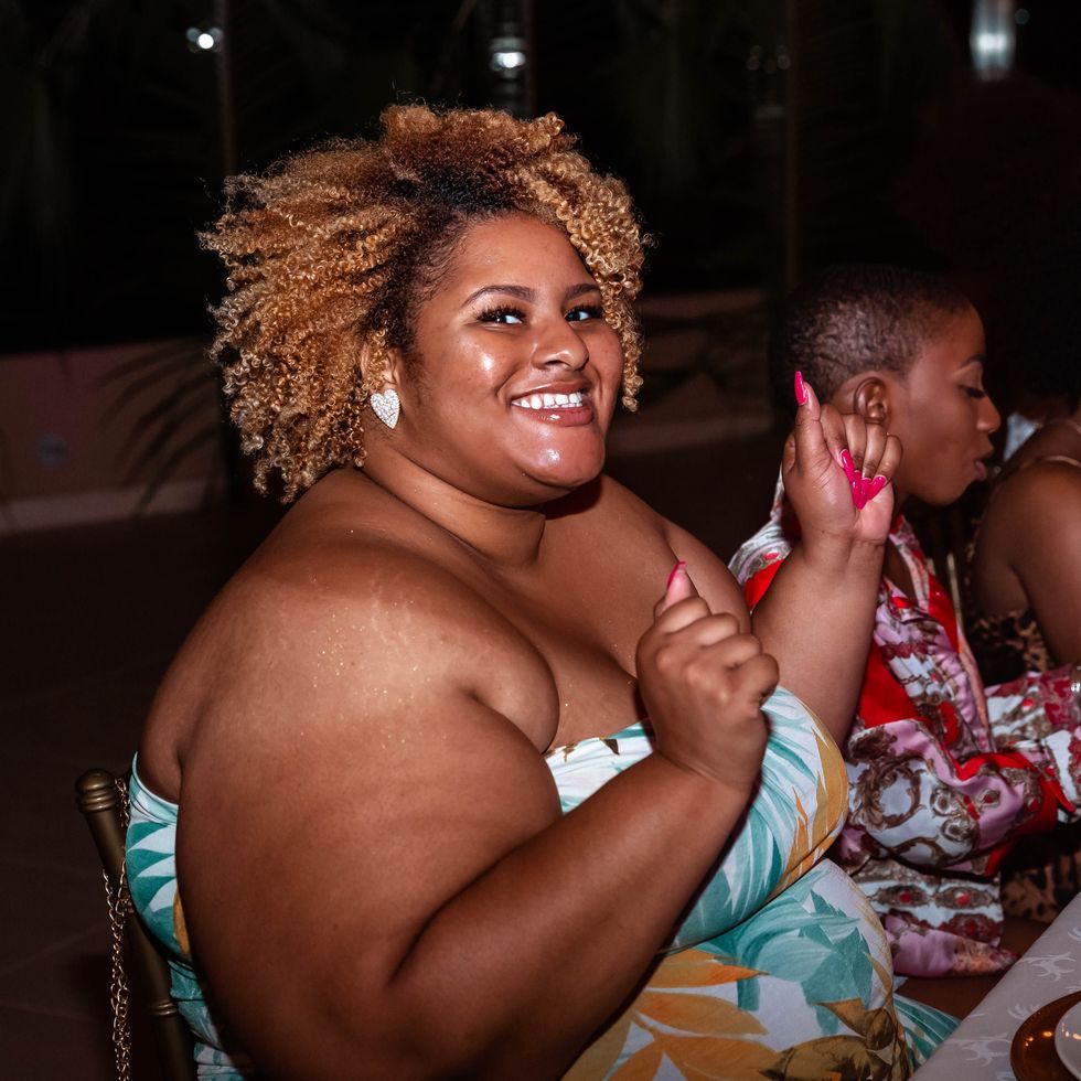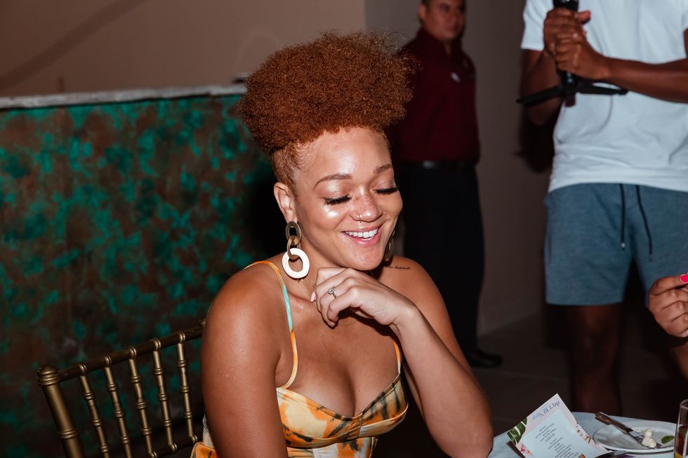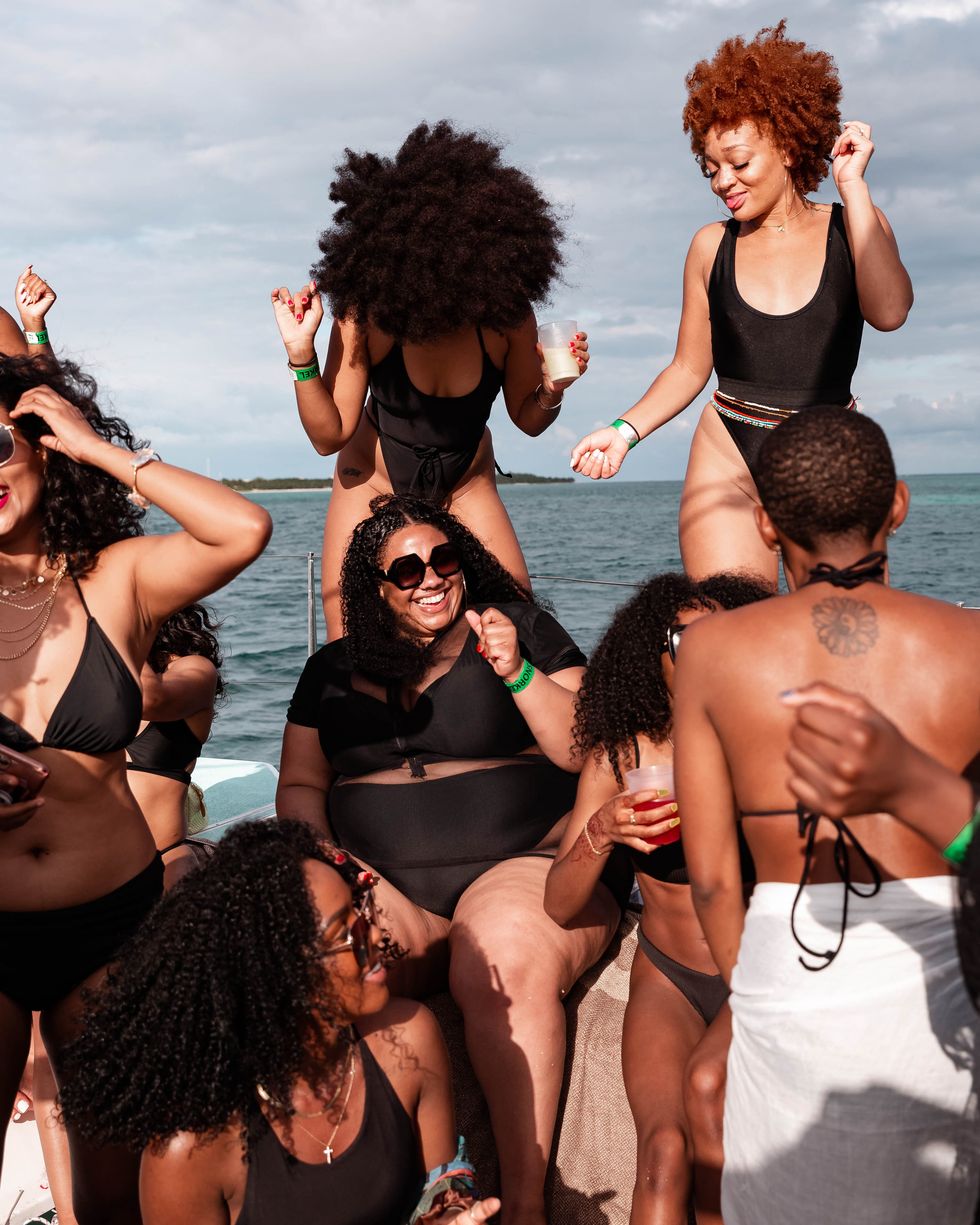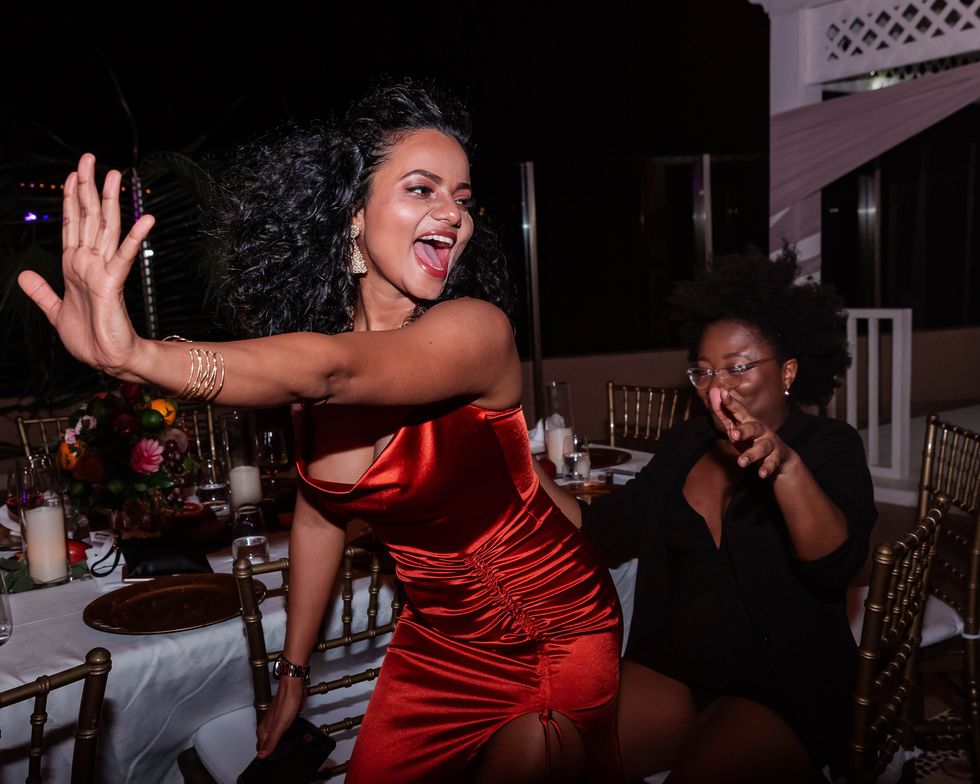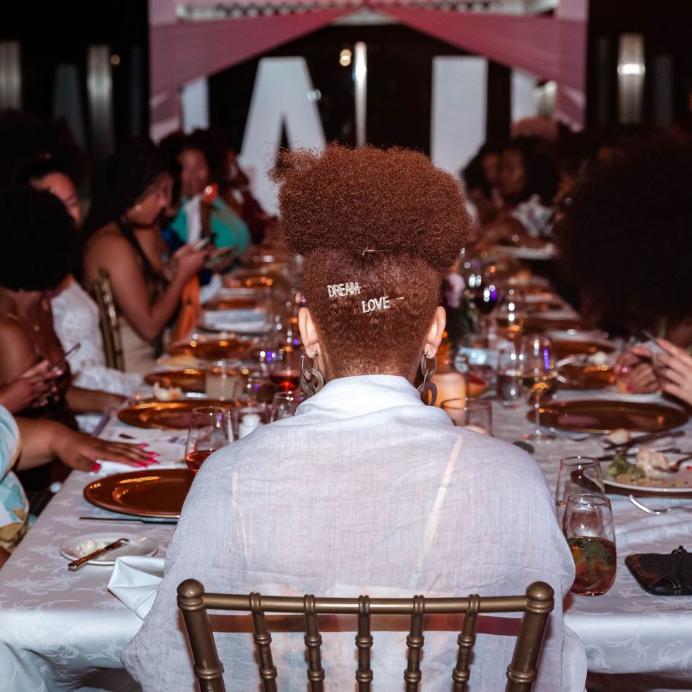To commemorate our magical experience with the Curlfriends coming to an end, we had dinner on the rooftop on a windy night where the light from the full moon acted as our source of energy. We were treated to an immaculate dinner that included crab salad with spinach, shrimp salad with pineapple, string beans, lobster, and more. We communed over drinks, laughter, and the electric slide. It was such a powerful reminder of the incredible energy that's felt when surrounded and being poured into by dope women.