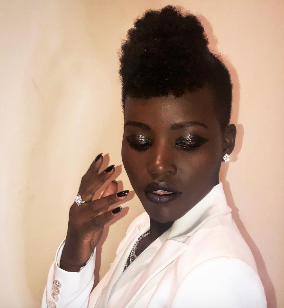 Lupita's Black is so beautiful, Beyonce wrote a whole song about it; and this look that features the Lancôme Color Design Eyeshadow Palette in Gris Fumee topped with Lemonhead's SpacePaste glitter is proof that she deserves all the awards.