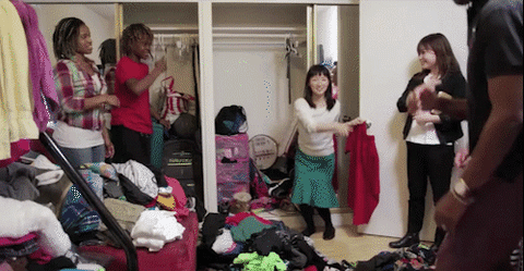 In her Netflix special, Marie normally starts the process by asking the client to gather all of their clothes and shoes (yes, ALL of them) and put them on the bed. At that point, you should go through each item of clothing and every pair of shoes and decide what sparks joy. If it doesn't make you feel good, let it go, sis. By doing this, you have the opportunity to identify what you have and what you need. After doing this exercise, you may find that you don't need that new pair of jeans as badly as you thought you did.