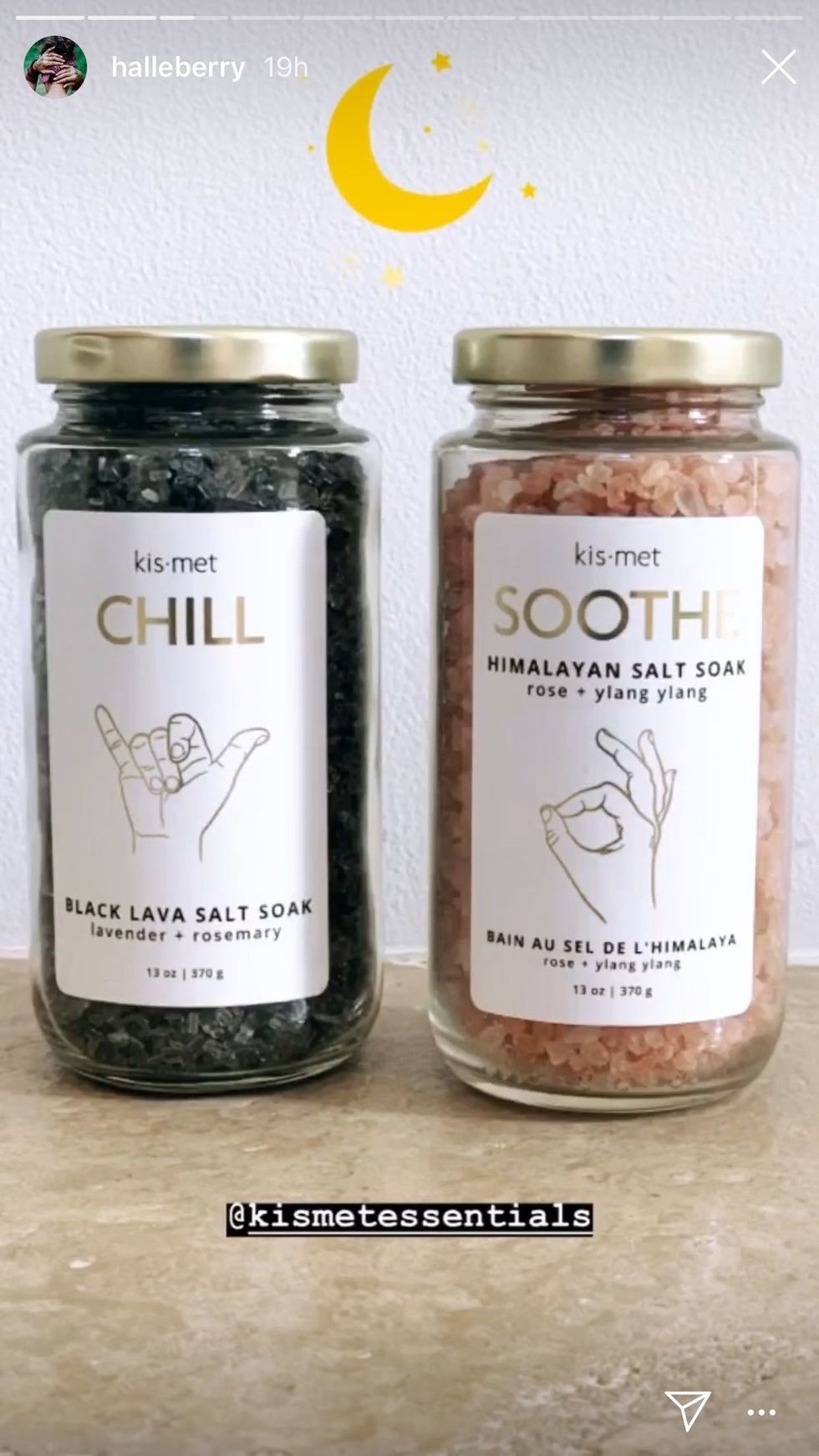 Give bath time a boost with these all-natural soaks from Kismet Essentials. Halle's picks are Chill, with notes of lavender and rosemary, and Soothe, made with Himalayan salt and rose petals, which can both be bought at Anthropologie for $20.