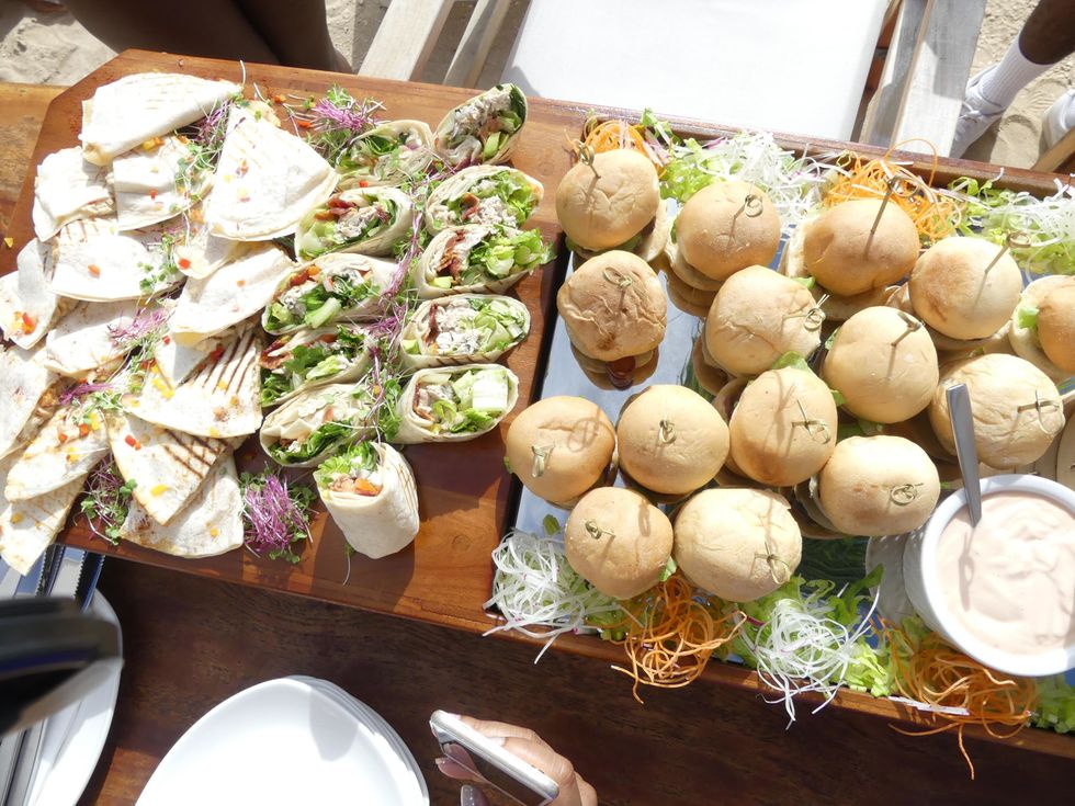 No girls trip to Barbados is complete without a visit to Nikki Beach. I was not ready for the insane amount of fun and frolic that was awaiting my arrival at this posh, luxurious destination. The minute we arrived, it was clear that Nikki Beach was made with a queen in mind. Day beds and lounges stretched the length of the pool on one side, while the beach gave endless views on the other. Our section was ready and waiting for us when we arrived and we quickly traded whatever we were wearing for bikinis and one pieces. The vibe at Nikki Beach was lit for the entire time we were there. Freshly made mojitos were delivered to us with all the pomp and pageantry we deserved; our delicious spread was served on the cutest little boat complete with sparklers, music and...abs!