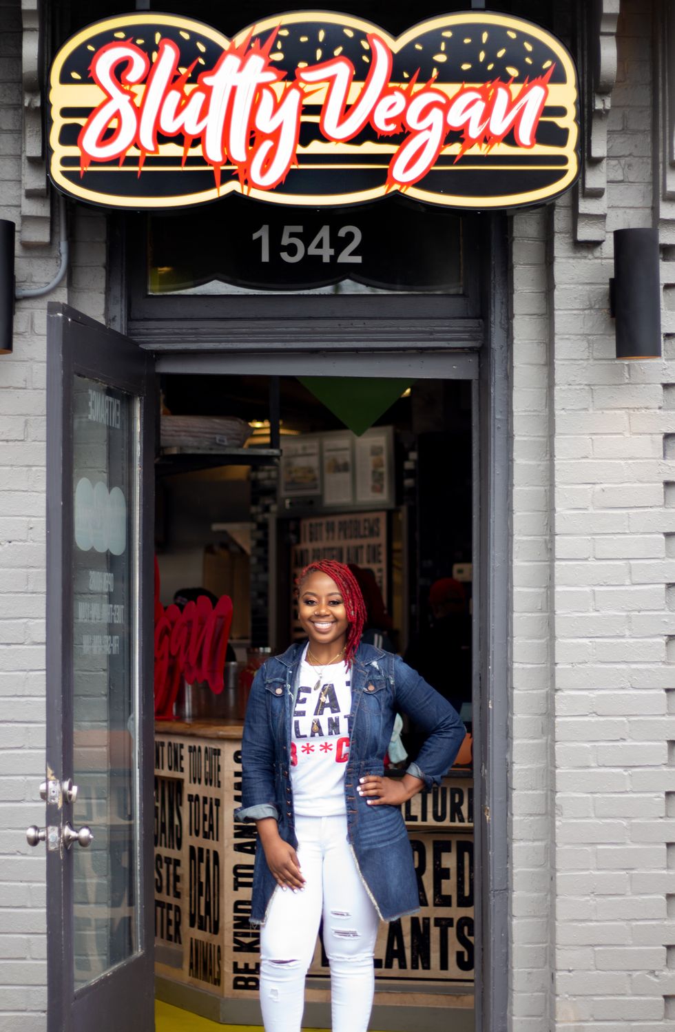 Leading the way is founder Pinky Cole. With her red, shoulder-length locs, radiating smile, and confidence that permeates any room she enters, Pinky is focused on her vision of making enjoyable vegan food a worldwide phenomenon. "Slutty Vegan [isn't] slowing down anytime soon," says Pinky. "It's going to be alongside the Burger Kings, McDonalds, and Sonics of the world."