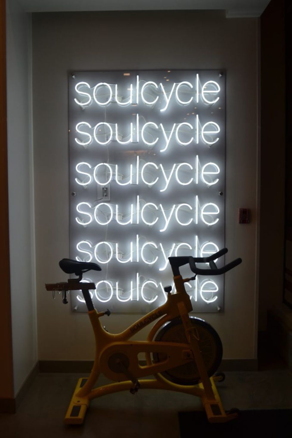 I clipped my shoes onto the pedals and began to cycle slowly, warming up my stiff calf muscles as I mentally prepared for the workout ahead. The door closed shut, leaving me and a handful of others in a nearly dark room, lights dimmed and candles flickering at the front of the instructors' stage. Dani Robertson paced back and forth, warmly greeting individuals with smiles and promises of a judgment free zone where old and new comers could relax and unwind. There were no real rules but one—you had to quiet the negative thoughts for the entire 45-minute SoulCycle session and “choose happy."