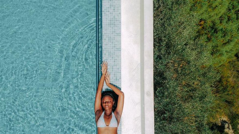 Some of you might say that this is the biggest "duh" of all of the tips. But you know what, sometimes it's the most obvious things that need to be reiterated. You know how many folks say that we all look the same in the dark? This point, on some levels, applies once we're in water too. While some people like to sit out and tan or whatever, you've got that gorgeous melanin. Girl, at least go wade in the water! Because, at the end of the day, that's what a swimsuit is (ultimately) made for. Right? #wink