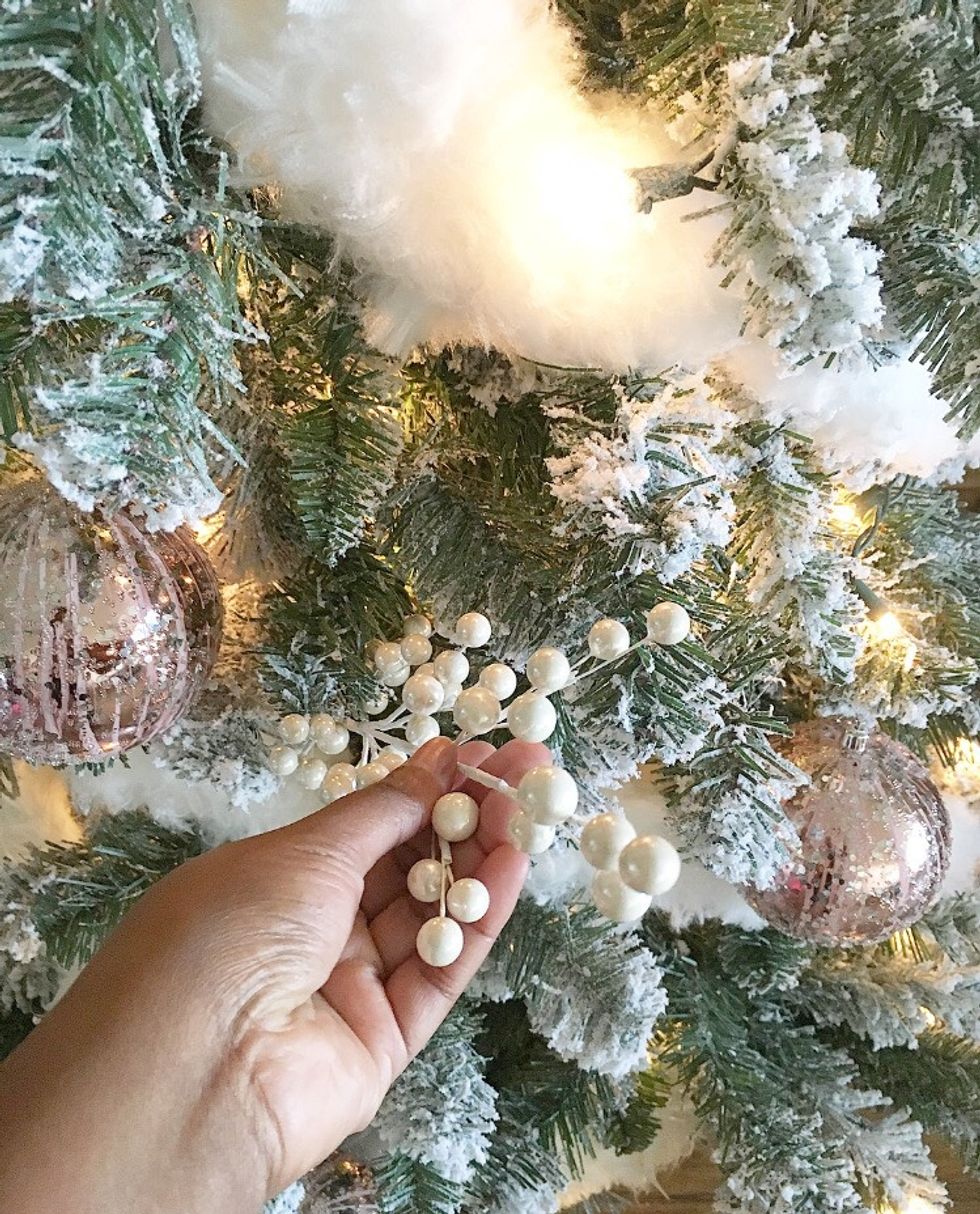 I suggest you go with a flocked or colored (maybe white, or even silver) tree to achieve the super glam look. However, if you have a green Christmas tree, that will work too. Moreover, make sure you setup your tree and fluff the branches! I typically start to fluff at the bottom, and work my way up. I suggest you put on a good Christmas music playlist, for entertainment purposes and TAKE YOUR TIME! You should fluff one branch at a time, so your tree will look full!