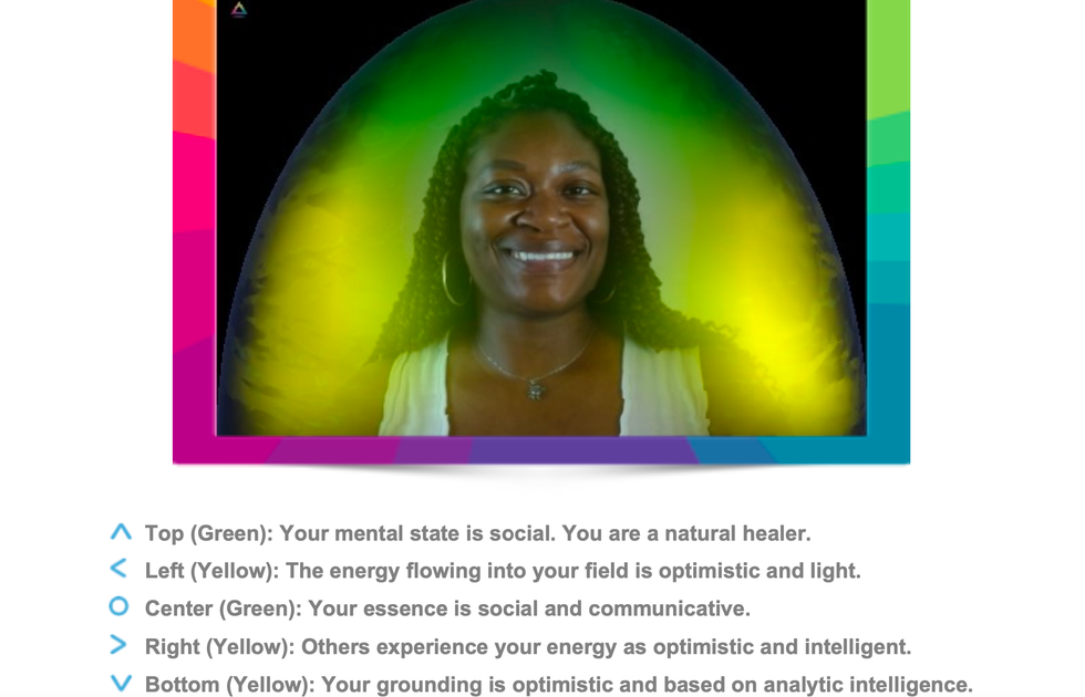 The colors of your aura range from yellow to blue, and they all have different meanings. My main colors were green and yellow, with green being around my head and in my center. The color in your center is considered your basic nature and personality color, and according to my aura report, green personalities are focused on having a harmonious, balanced life, and they also enjoy helping others. Here I was, thinking I craved balance because I’m a Libra, but it’s possible I may have a double dose of this quality. Greens are also social, crave happiness, love expressing themselves, love spending time in nature, and are all about living an abundant life.