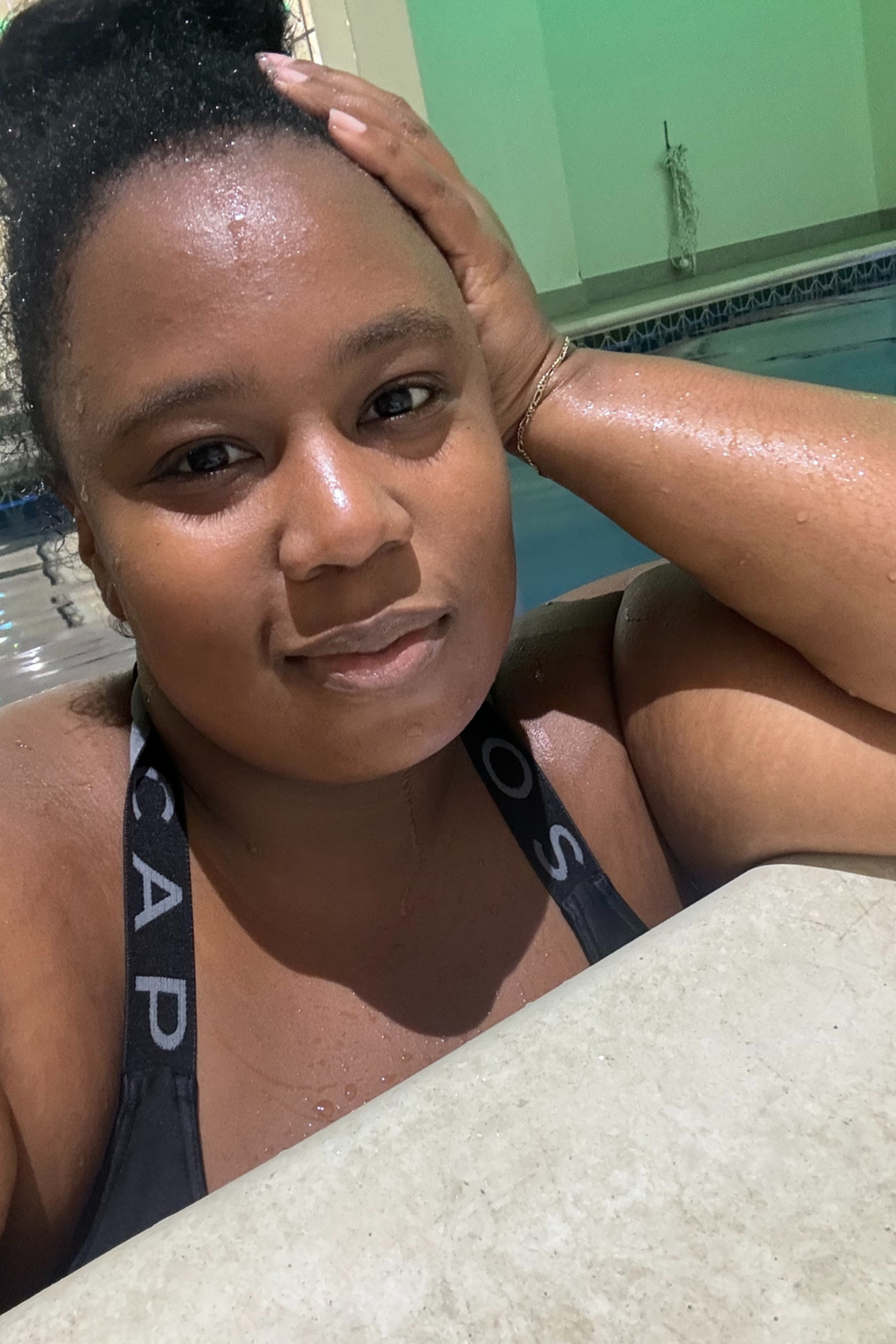 2 p.m. Church is over, and I'm headed to the pool, but before I get into the water, I pretreat my hair before the swim with some water and Cécred Nourishing Hair Oil. As a swimmer, I pride myself on keeping my hair healthy, and in order to protect my hair from being saturated with chlorinated water, I soak my hair in fresh water and apply hair oil to the ends of it. This allows the chlorinated water less of an opportunity to penetrate the hair and cause more damage overall.