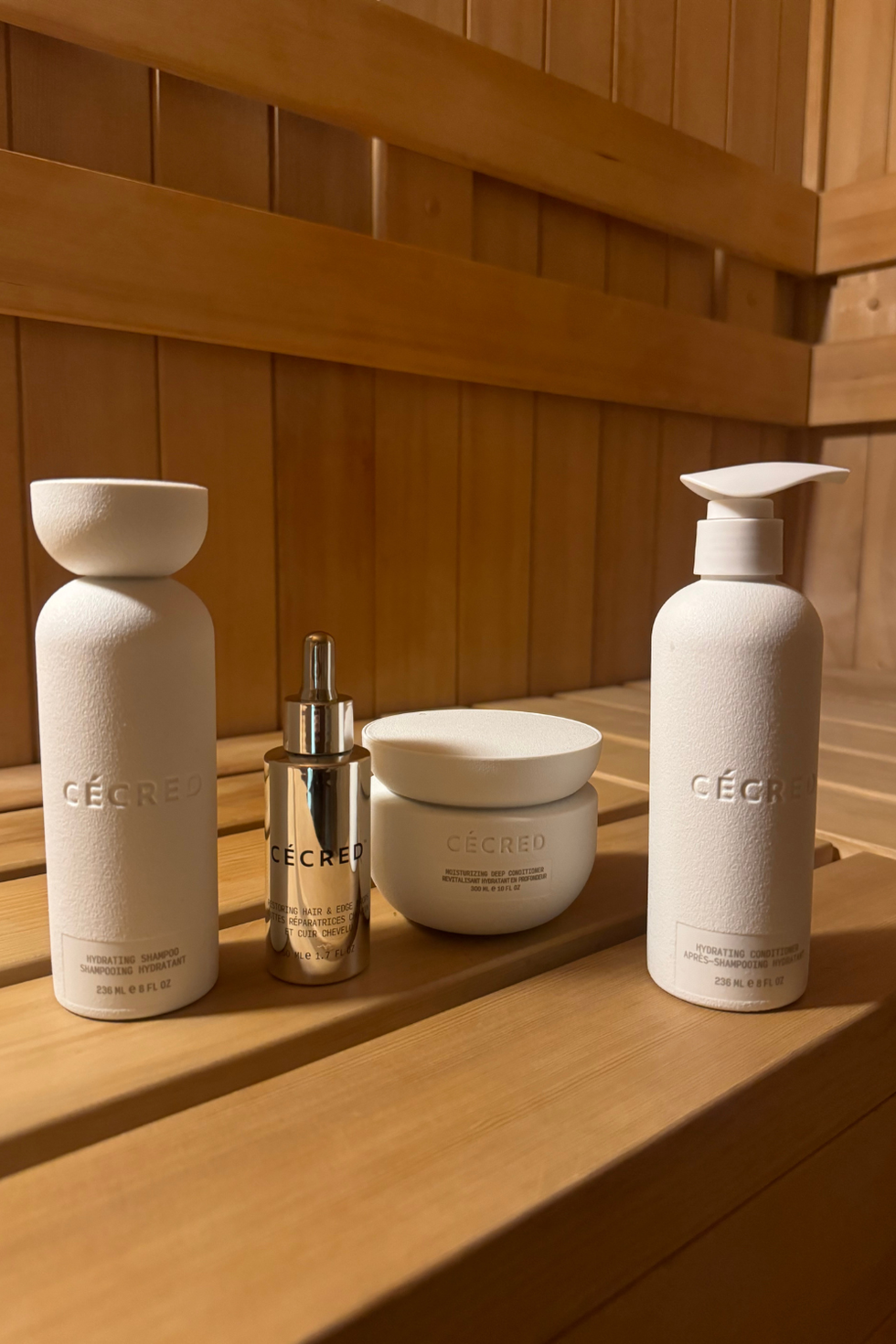 4 p.m. Out the pool, and ready for my #CécredWashDay with Cécred's Clarifying Shampoo & Scalp Scrub. I followed up with the Hydrating Shampoo in the spa shower and then applied the new hydrating conditioner! It just launched this month, so I was anxious to try it out in my wash day routine. I'll admit, I don't usually reach for a lightweight conditioner because my hair is pretty thick, that said, I know women IRL who have used Cécred religiously for months, and their hair is growing and flourishing - so we're on board with the entire routine and will report back by winter on my results!