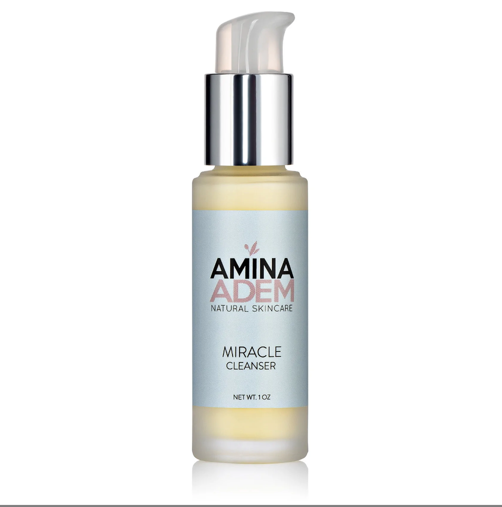 First, Maura uses the Amina Adem Miracle Cleanser ($40) for 60 seconds and rinses with warm water and pats dry.