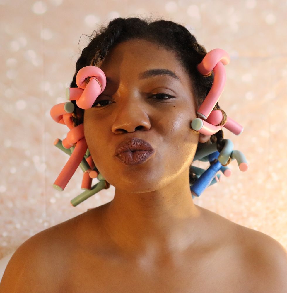 My least and favorite part of this process is getting twisted, which took me about two hours to get right. While my two-strand struggle was real, Mielle's Multivitamin Rosemary Mint Styling Cream (Target, $10) had enough slip for my grip to snap even the most unruly curls into shape. I then applied Flexi rods at the ends of my twists and went TF to bed. I allowed my twists to stay in for about two days, and no mom, I didn't go anywhere with these rollers in my head.