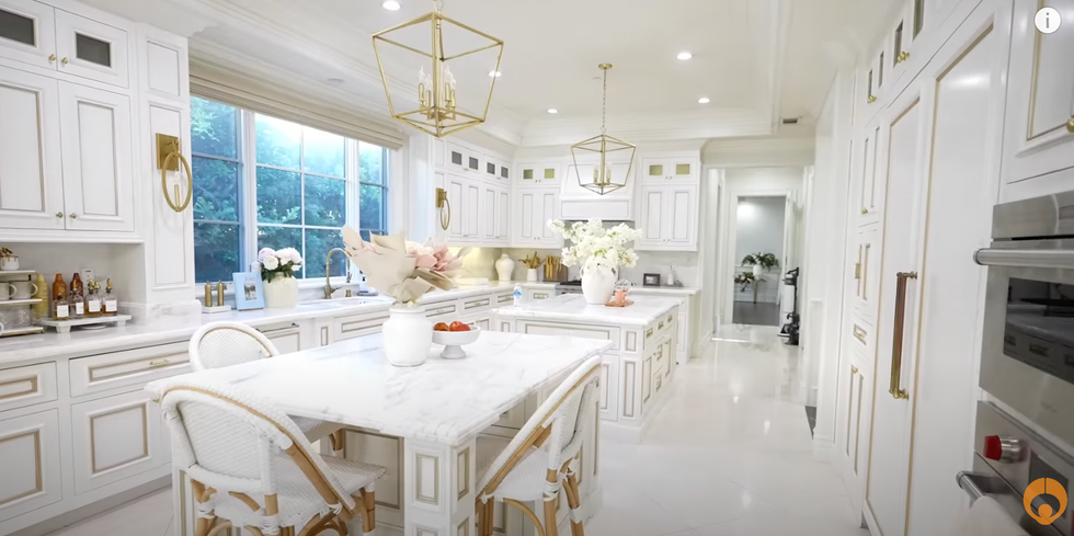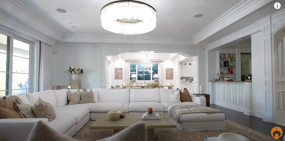 The star of the family room is the big, L-shaped white couch, and according to the YouTube star, her couch is so comfy you can melt into it.