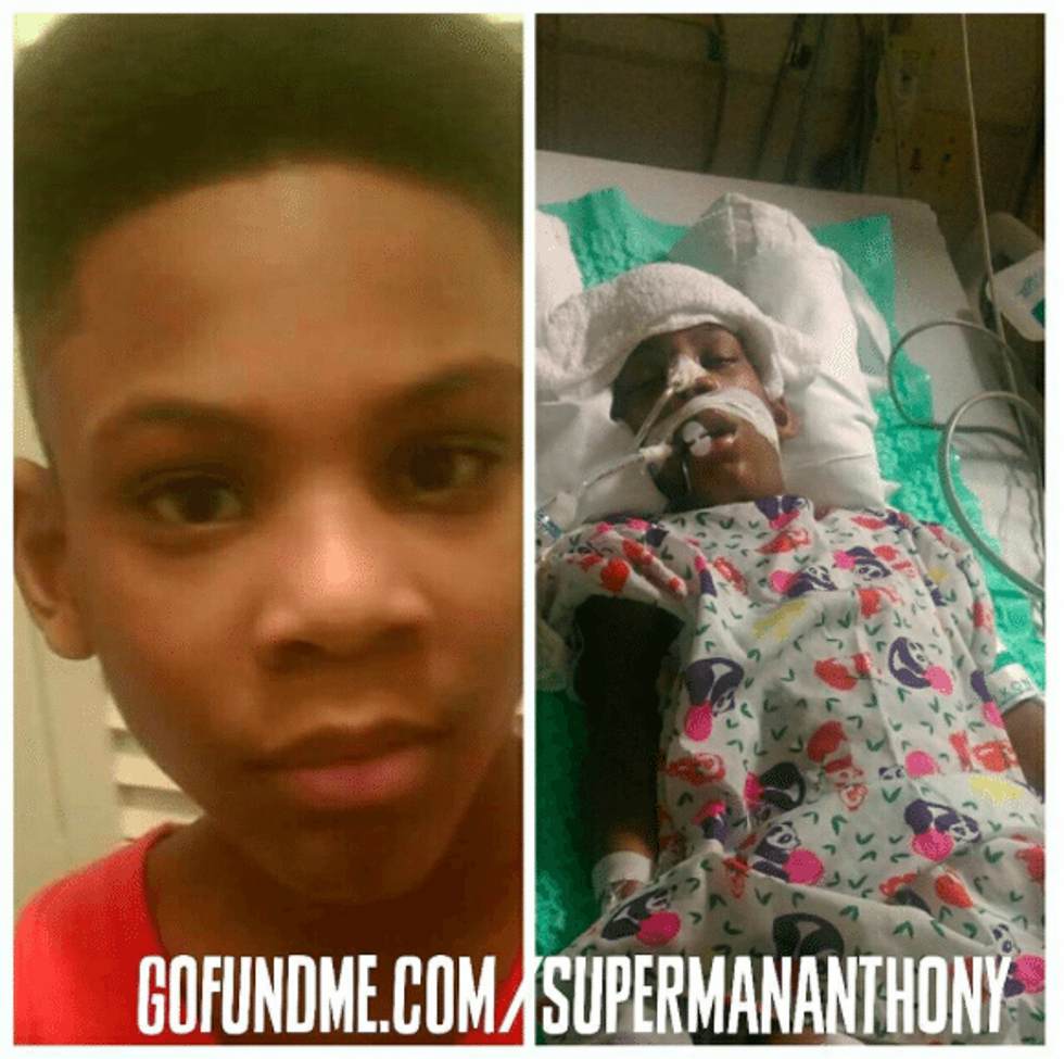 Superman is currently on a ventilator and oxygen tank to assist with breathing. Anthony attempted to breathe on his own at one point and was doing well, until the day his lungs filled with fluid and collapsed. Now, he has to get a trach to help him swallow his foods. His mother has had to quit her job in order to assist with Anthony's round the clock care, as well as be a mom to her three other children.
