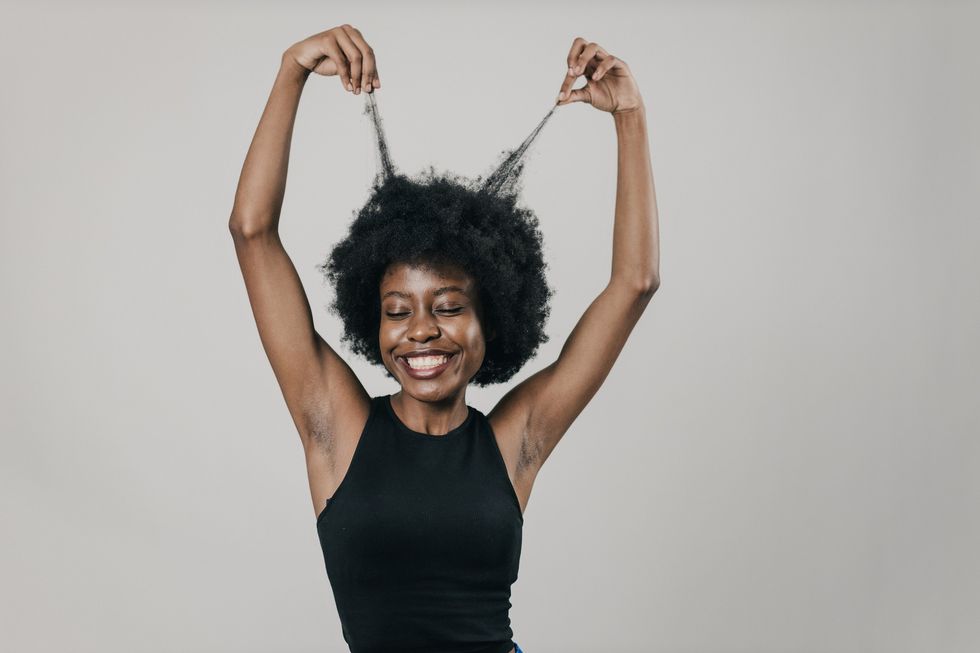 Black hair tends to be drier (because the natural sebum from our scalp doesn’t always get to fully saturate our curls from our scalp to our ends), so this tip needs a bit of flexibility. What I’m referring to is a lot of hairstylists say that if you can “hear your hair” while you’re combing or brushing through it, that means you are applying too much pressure, and that can lead to damage and breakage. One workaround is to use a detangling brush, or you can detangle (and oftentimes even style) your hair with your fingers.