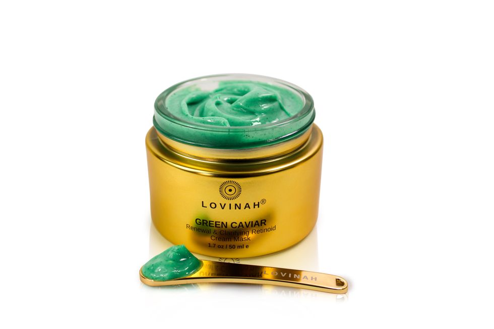 Lovinah’s line of cleansing balms, creams, oils, masks, and cosmetics includes ingredients like vitamin A derivatives, beetroot extract, and fermented elements with striking names that definitely intrigue.