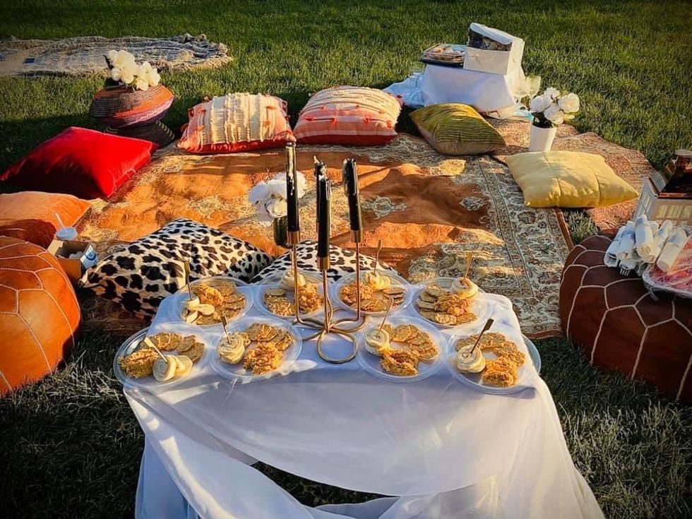 The setup was my favorite part. It was so eclectic and chic. Curated Luxe & Co creates a mini destination getaway anywhere. Whether in your backyard or at a park, they bring the destination to you with different themes and setups. The company prides itself on cultivating one of kind intimate experiences that you can't find anywhere else.