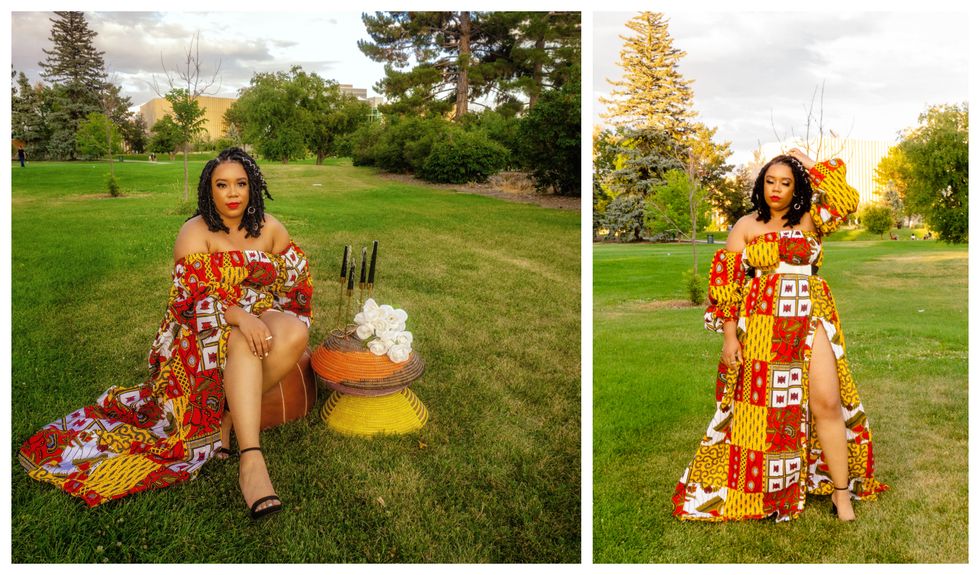 The moment I knew that the luxury picnic was happening, I knew I had to find a gorgeous getup. City Park was about to get all of the black girl magic, OK! I fell in love with this African printed gown by Chimzi Fashion, so I added it to the cart instantly. I then asked my girls to coordinate with my frock because... I was born extra. Because they love me, they agreed.