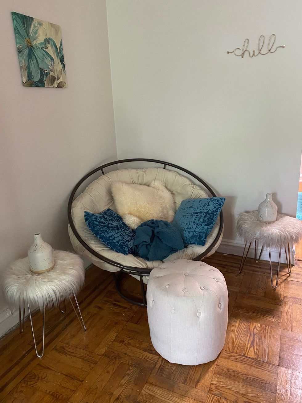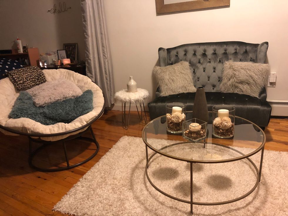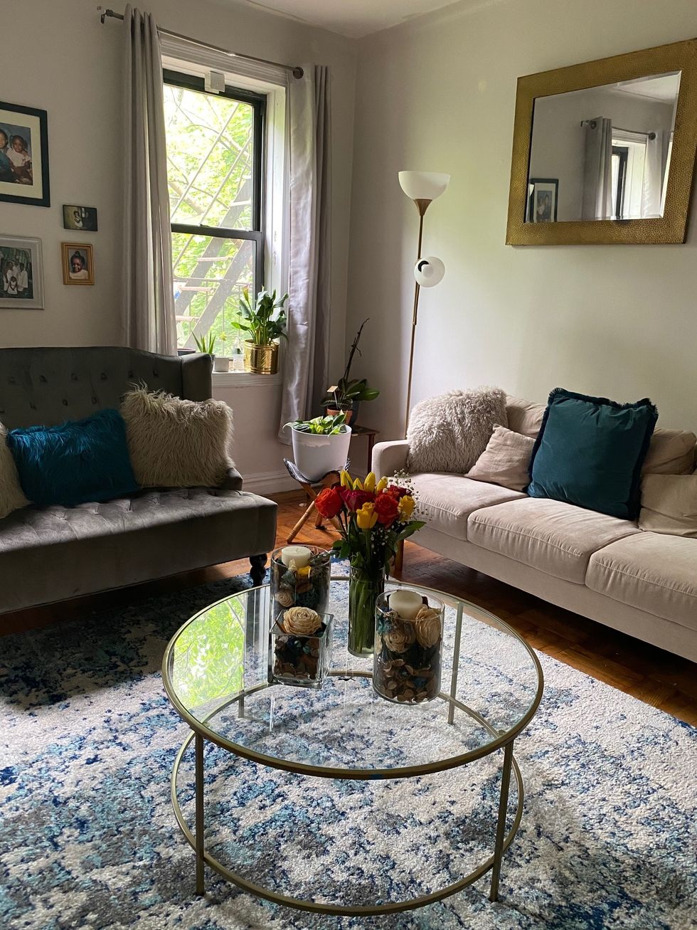 "I'd like to think that I manifested this apartment. I wrote down on a piece of paper, 'I will attract the perfect apartment for me. It will be in the perfect location. It will be safe and affordable.' I got exactly what I asked for. If I didn't shift into my abundance mindset, I could've possible lost out on an amazing living space. As far as rent goes, I only pay $55 more than I was paying in my studio. This apartment is four times bigger. No DIY projects, but I will throw this tip out there: Facebook Marketplace is the truth!"