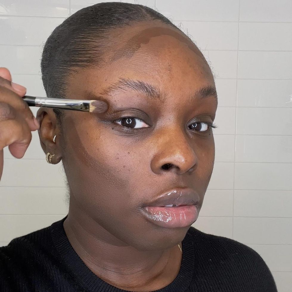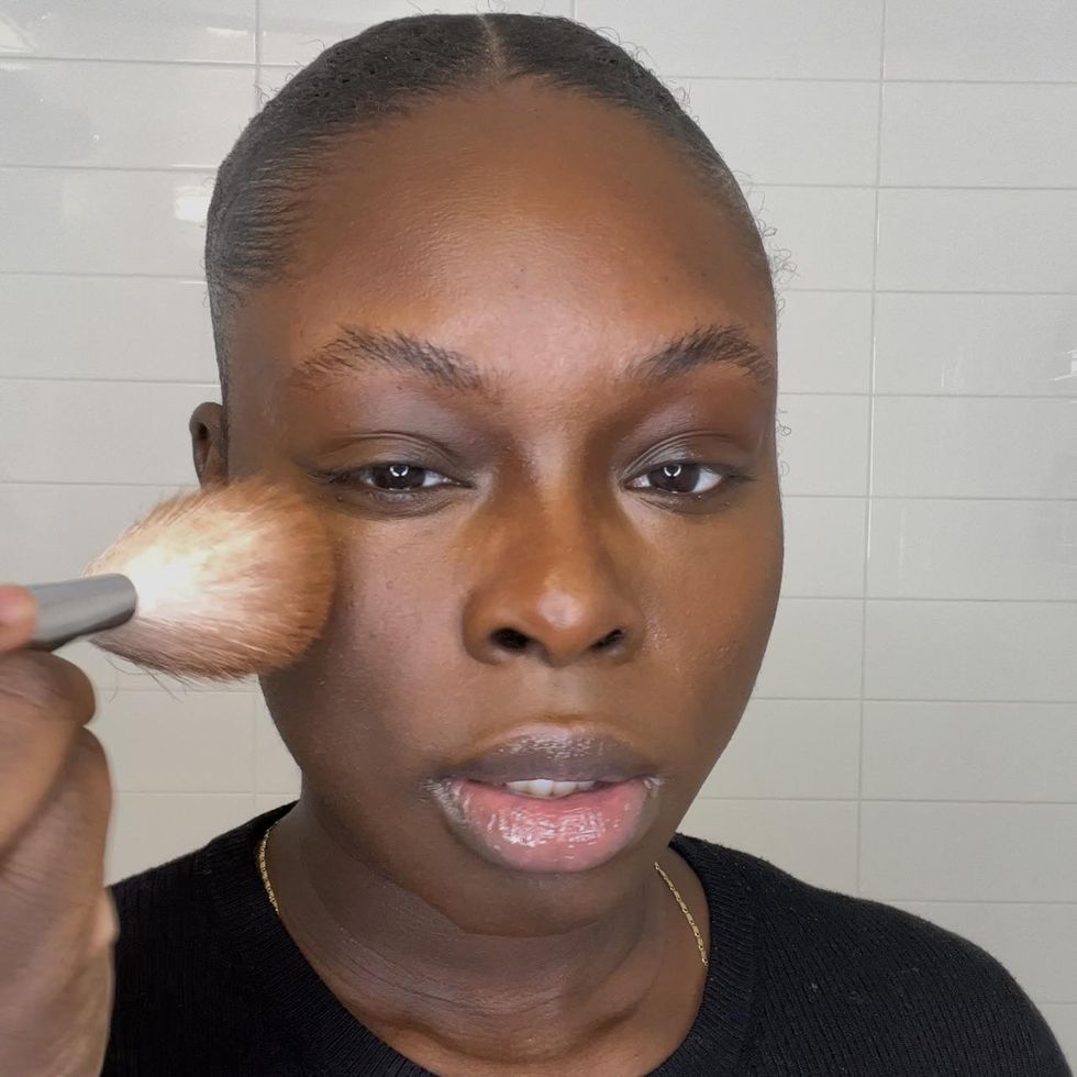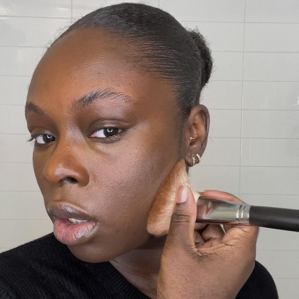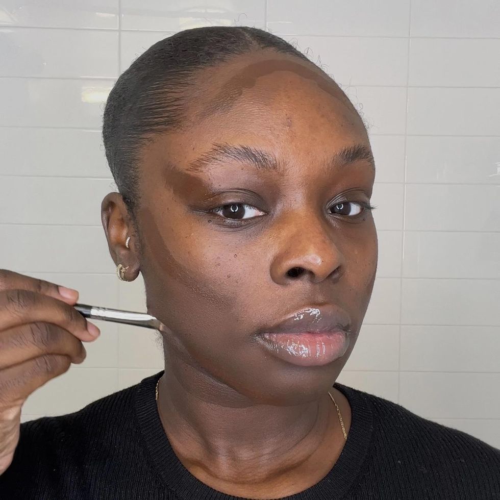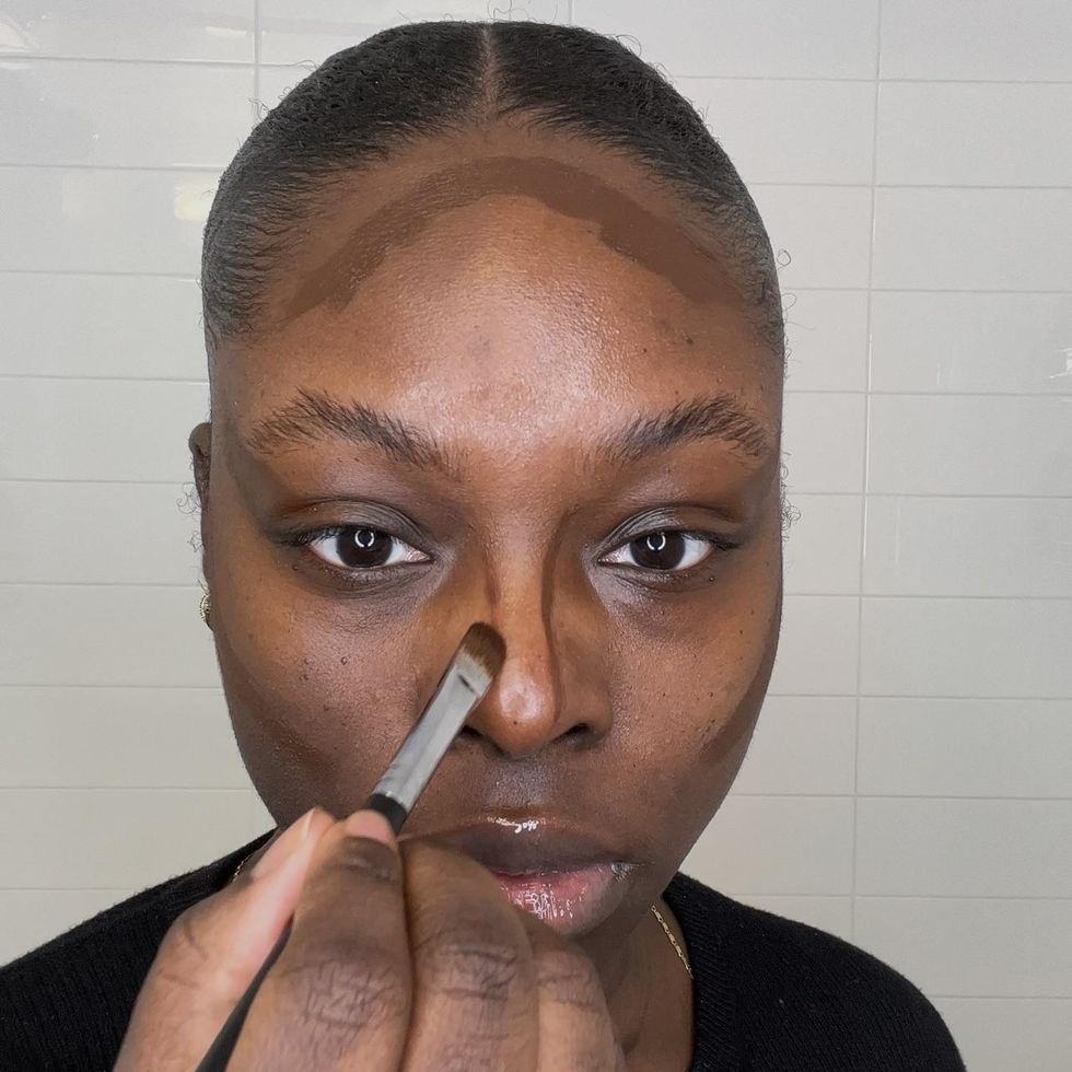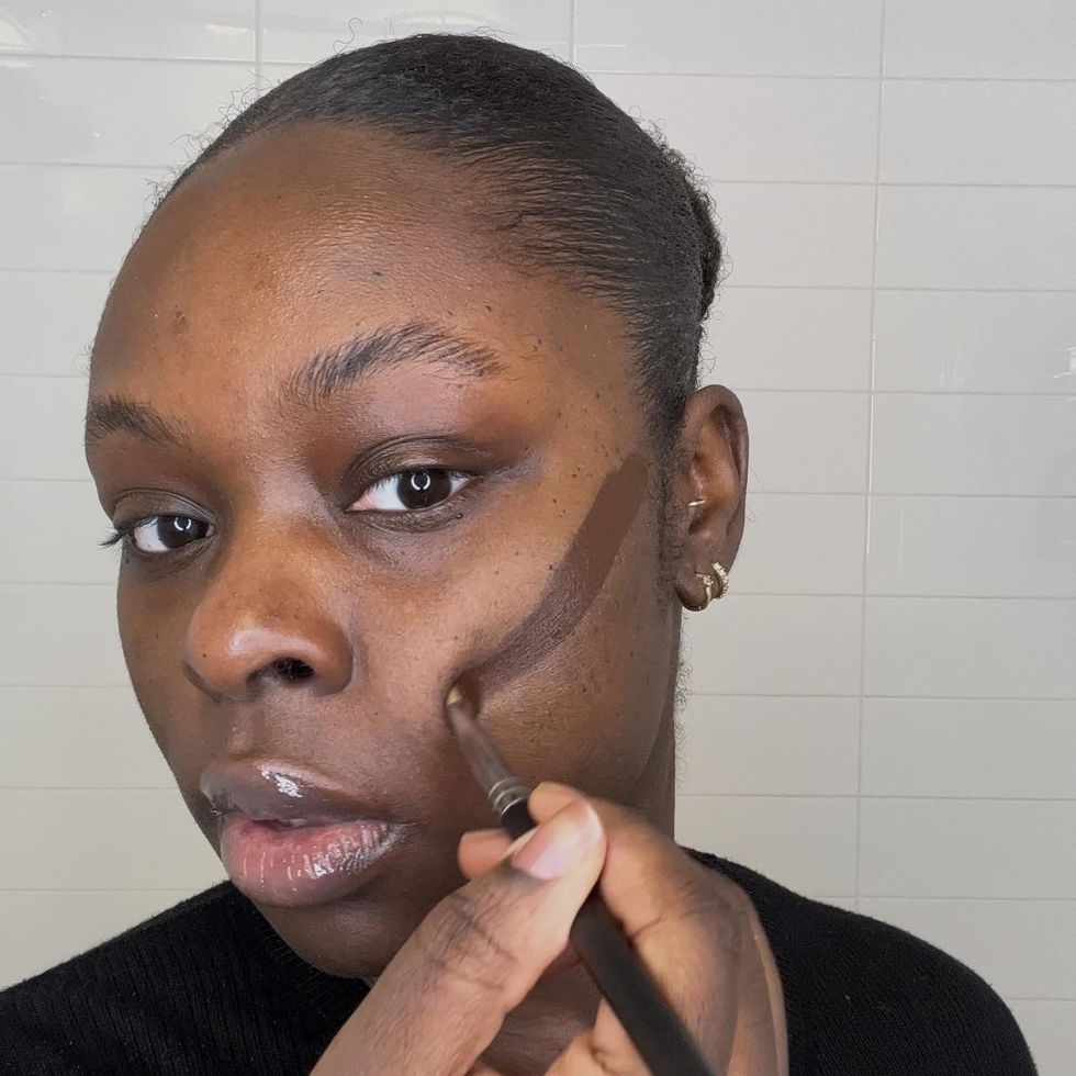 The first step is bronzer and highlight which Phillips refers to as “laying down the bones under the skin.” Take a bronzer shade of your choice and apply it to the following parts of the face: