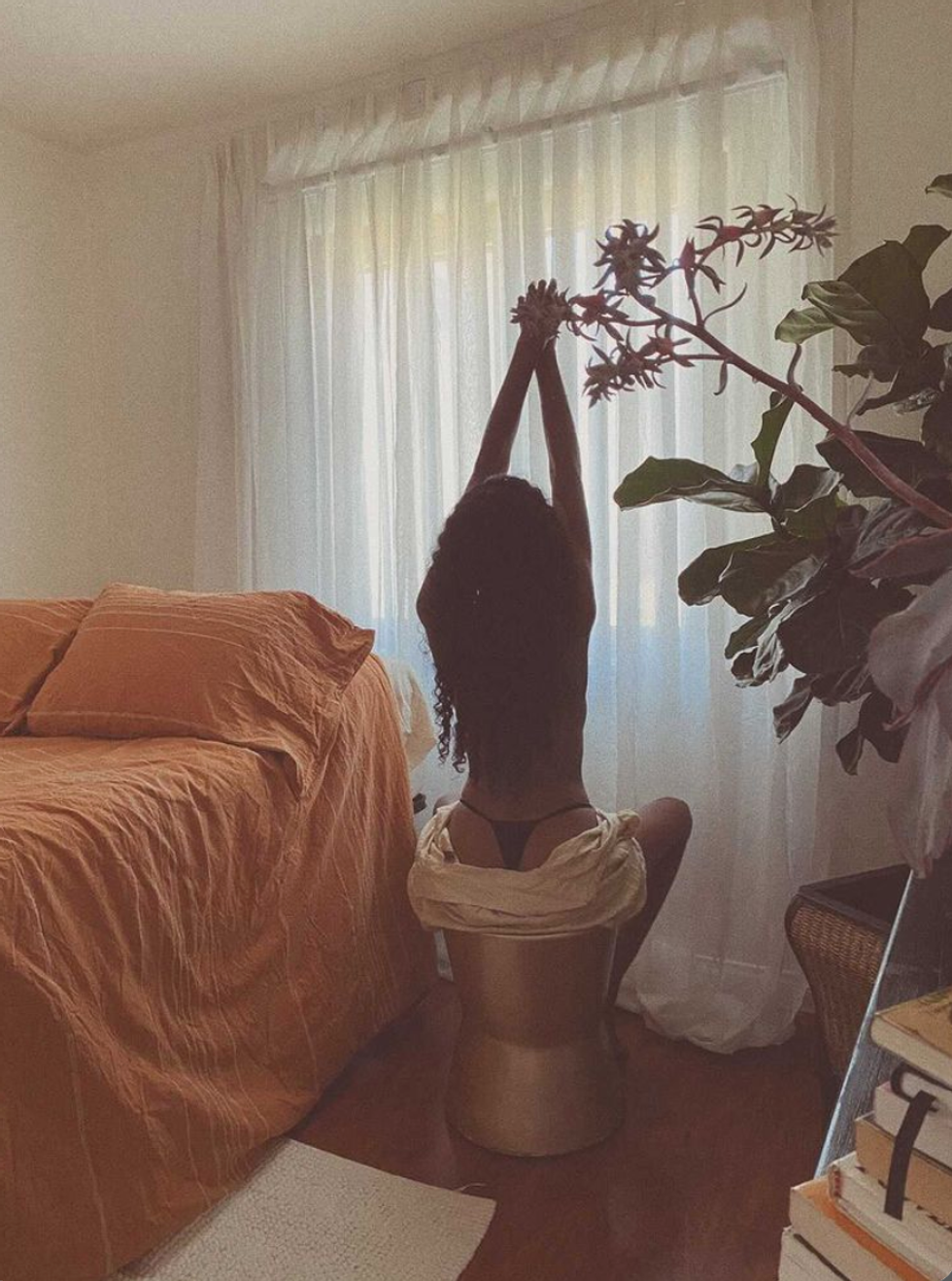 "For me, it's all about good lighting and the mindset. My best tips for taking a sexy selfie is to first do something that makes you feel connected to your body. For me, that's dancing. I am reminded of hips, of softness, of the strength and the subtle fragility of my womanhood. I like capturing myself after those moments. I find a window to act as my source of light and light sheen of sweat that covers me adds to my glow. And then it's about seduction. Connect with the camera but also connect with your body. Accentuate your favorite parts of your body and find beauty in the simple things: displayed shoulders, the expanse of your back, exposed tattoos that feel like whispered secrets, the curve of your peach, parted lips, and hair.
