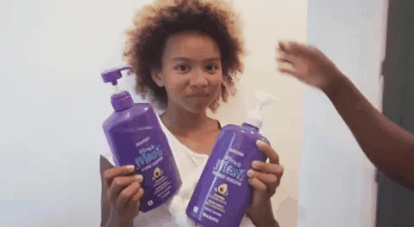 First up was Akyli, who's texture is in the 3C/4A realm. She opts for the Aussie Miracle Moist Shampoo and Aussie Miracle Moist Conditioner with avocado and Australian jojoba oil. She has to heavily condition her hair because she has curly, frizzy hair, due to lack of moisture. Her hair is also dyed at the ends, which causes it to tangle.