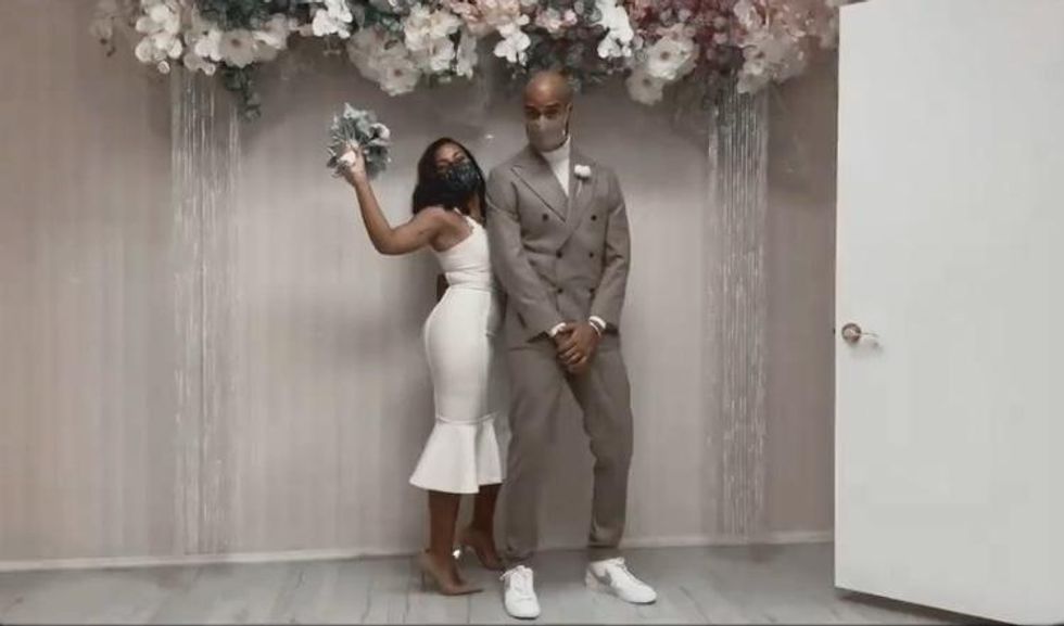 They vibe and have a blast on the way, which they arrive to, fully masked. After a few shots and signing a little paperwork, the couple get married (and by this time, I'm screaming with tissues!)