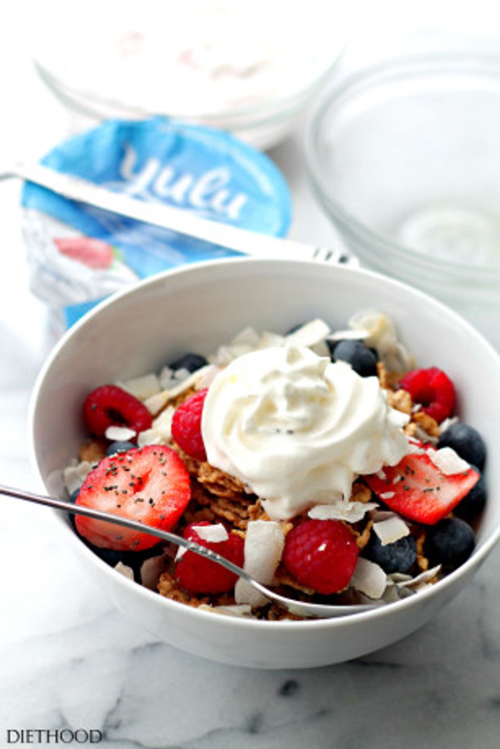 One of my favorite ways to start the day is with a filling breakfast and I've found that one of the best ways to do that is with a yogurt bowl. I love yogurt bowls because the added ingredients counteract the tartness of Greek yogurt. And yes, in order to get the full breadth of its benefits, you must go with Greek - plain Greek to be exact. It might be very tempting to gravitate towards Chobani brands of yogurt where the fruit and its syrup is already in the container or the Yoplait fruit flavored varieties, but those psuedo healthy options are chock full of added sugar, diminishing much of the health benefits of eating yogurt. So if you're going to start your day off with yogurt, do it right and go plain Greek. Get your sweetness from the fruits you decide to add.