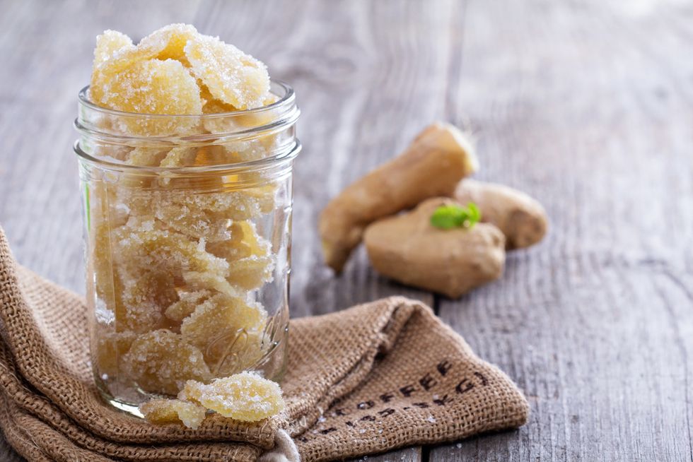 Honestly, any kind of ginger—ginger snaps, ginger tea, ginger capsules—will get the job done. But a potent (and delicious) form of ginger is crystallized ginger candy. You can get some at your local grocery store or learn how to make it yourself by clicking here.