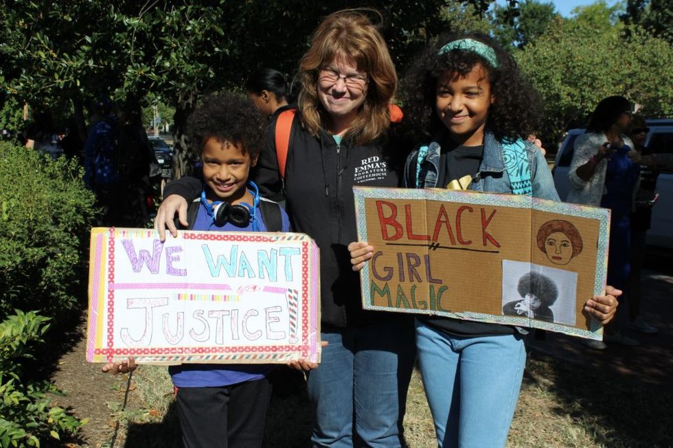 Rather than ask the protesters, with their kinky hair, and African pendants, and labored over signage why they were marching, I asked them who. Who did they want to call the names of black women who met deja-vu inducing violent deaths? Who did they bring to listen to stories about the weight of the sexism that intertwines with the racism, homophobia, transphobia, and xenophobia we face? Who was by their side, singing of their commitment to defend black women and femmes?