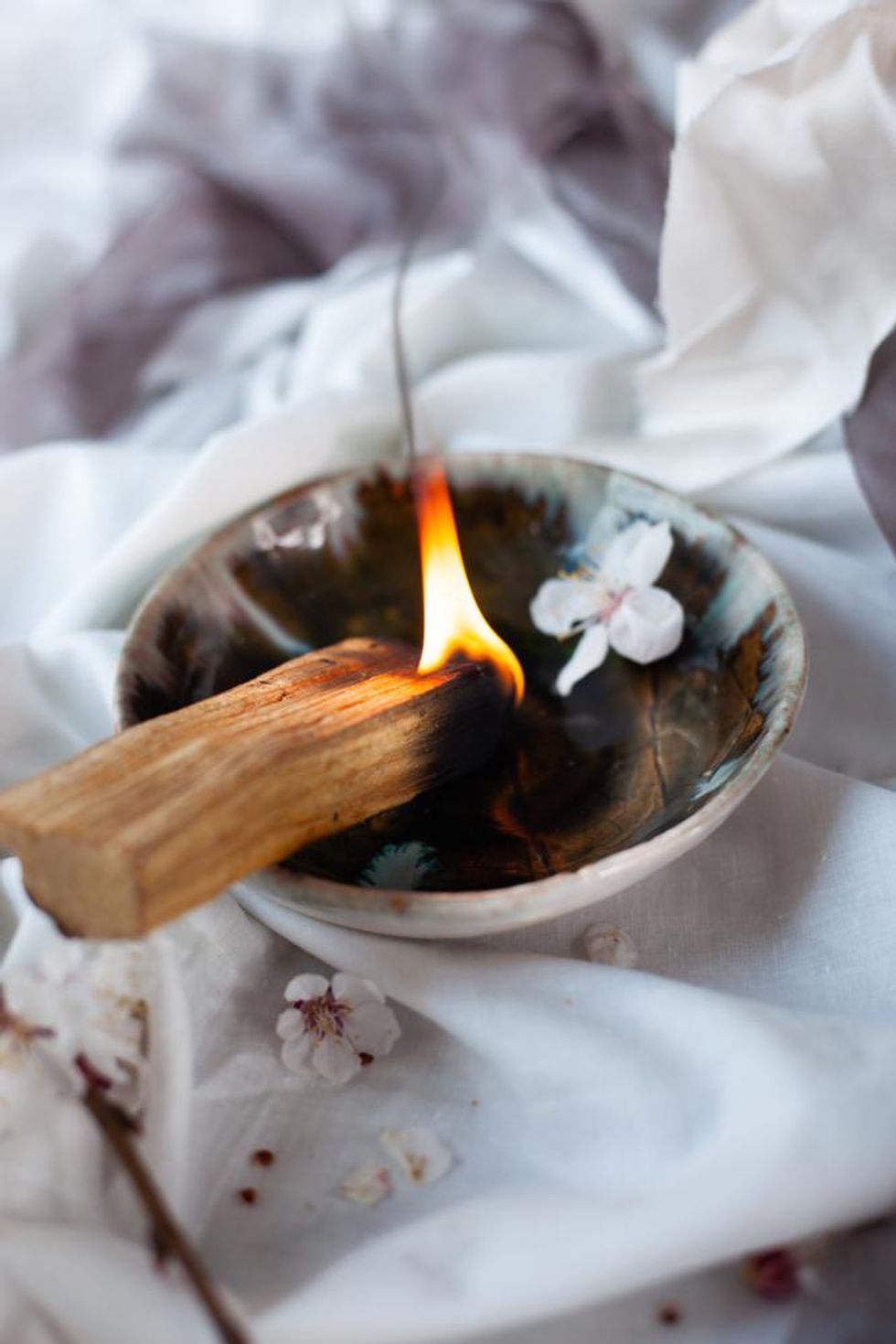 While palo santo comes with a nice handful of benefits, there are multiple ways you can use it to make sure it serves the purpose you really need. If you have an actual stick of palo santo, light it with a candle (pointing the tip 45 degrees down to the flame) and let it burn for roughly 30 seconds before blowing it out. You can then place it in a candle holder or keep it in your hand.