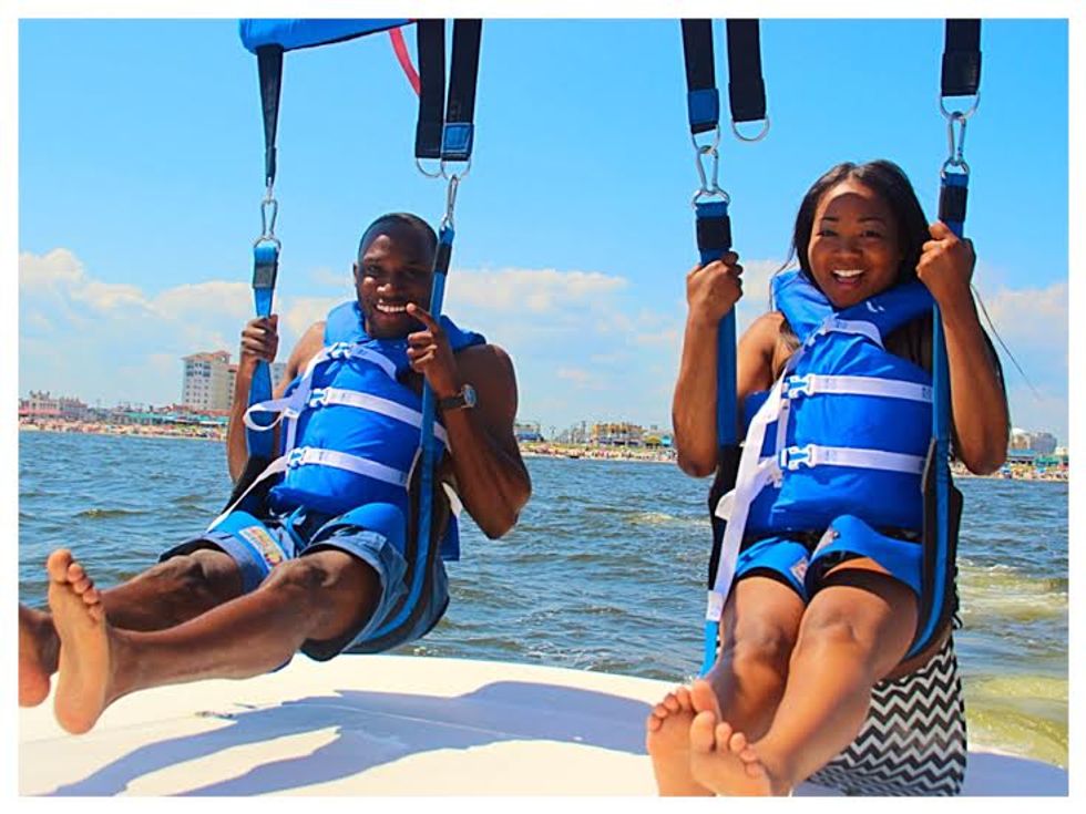 How do you celebrate your anniversaries? While something small and intimate may be the way to go for some of us, some xoCouples plan extravagant getaways overseas and others --they celebrate their relationships by taking things a step further. It was a lowkey weekend for Brianna and Lamar, a couple celebrating their two-year anniversary in Ocean City, New Jersey. The pair headed to the beach to try parasailing for the first time with three other couples and two friends. Amid the excitement of trying something new, Brianna was in for a bigger surprise when her then-boyfriend decided it was best to propose to her hundreds of feet in the air.
