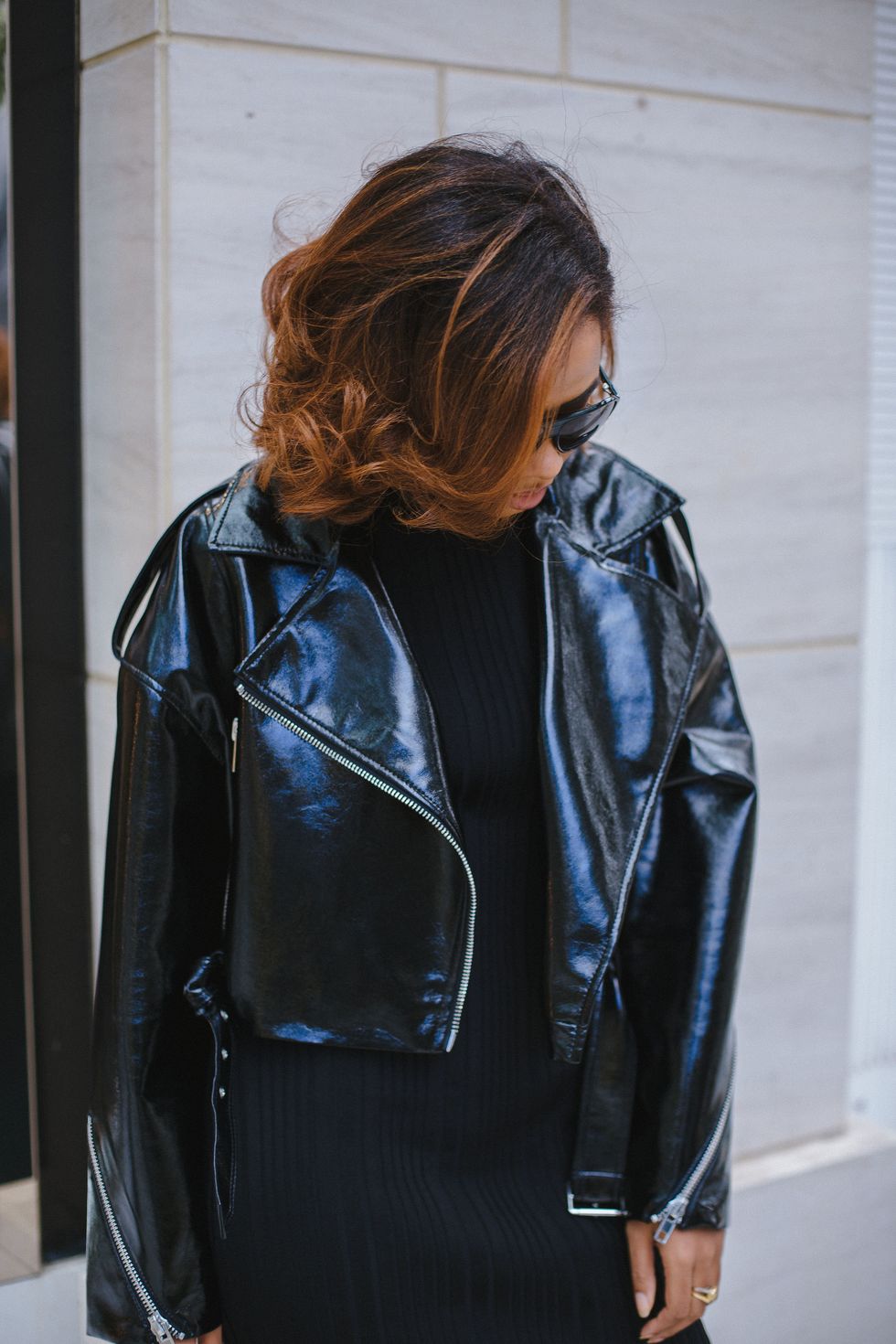 Now, if you're really feeling like a badass, then dive right into a shiny patent jacket. Jackets are so fun because even with this type of leather, there's still room to play around with the material and finish. Options can range from the classic shiny patent leather finish, or even a crushed patent leather look where the jacket looks a little more toned down and worn in.
