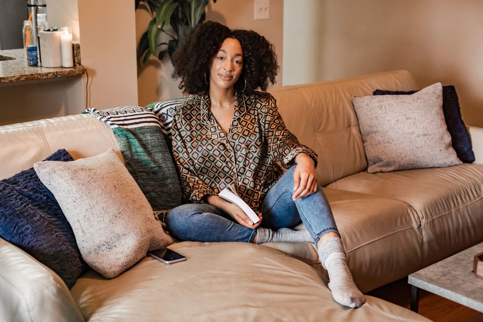 "My boyfriend and I are both antisocial and we both like to just chill and relax. So even though we're like together in one space, it's not invasive because we're able to do our thing. We'll kind of congregate here which is is why I love this couch."