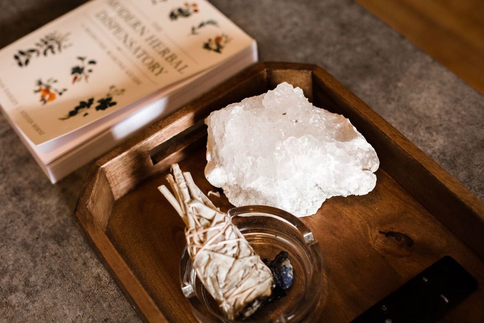 "I'm not playing about my energy, I sage once a week," she told xoNecole sternly. "I don't even know if the whole crystal vibe is real, but mentally, it makes me feel better, so I keep my crystals on deck. I have crystals everywhere, in the bathroom, on the bookshelf. At the very least, they claim that they deflect cell phone waves, allegedly."