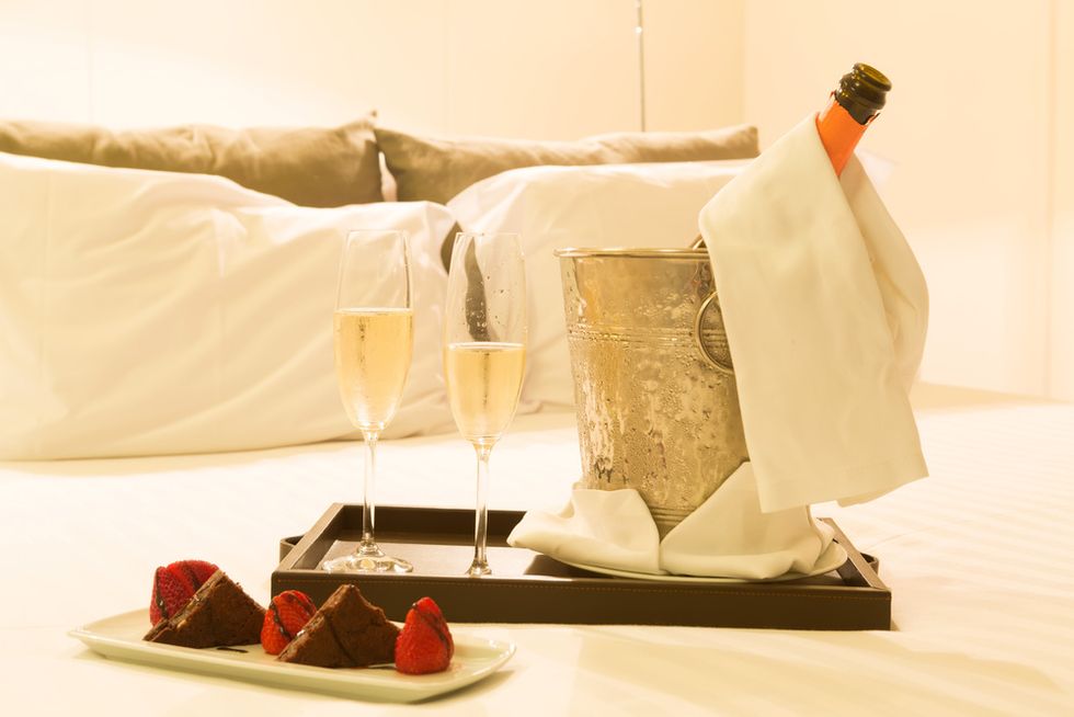 If you decide to try the hotel room date, make the moment last even longer by waking up to some good old-fashioned morning sex, followed by a breakfast that both of you make together. If the two of you want to go a couple of more rounds after, make sure that your meal consists of aphrodisiac foods like blueberries, honey, avocados, dark chocolate and ginger. Like maybe a bowl of berries and whipped cream, some chocolate chip pancakes and/or an avocado omelet with some ginger tea. Oh, and don't forget to put it all on a tray and eat it in bed. It'll be the perfect way to end a date—or start an entirely new one, if you know what I mean.