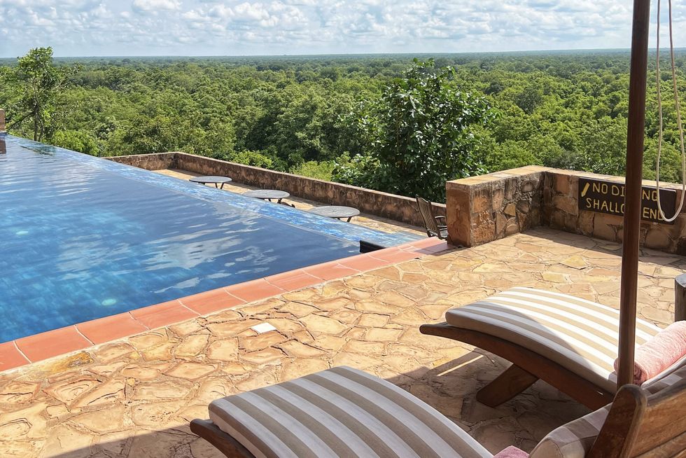 Zaina Lodge has a gorgeous dining area that overlooks the savanna, pool loungers that surround an infinity pool, and cabins with outdoor showers, high-end linens, and private balconies. The food during our stay included a mix of Western and African dishes; there was oatmeal, bacon, and toast for breakfast along with dinners of goat pepper soup, fufu, and jollof rice.