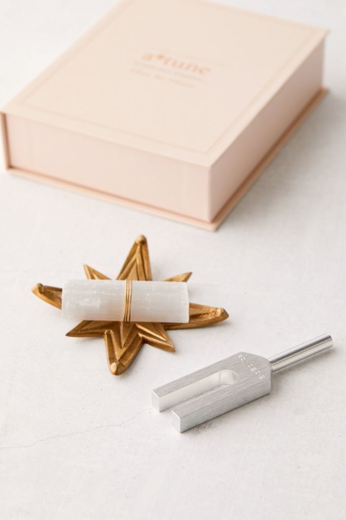 Tap into the power of sonic rituals with this kit featuring a BioSonics tuning fork and dish with a hand-wrapped crystal attached.