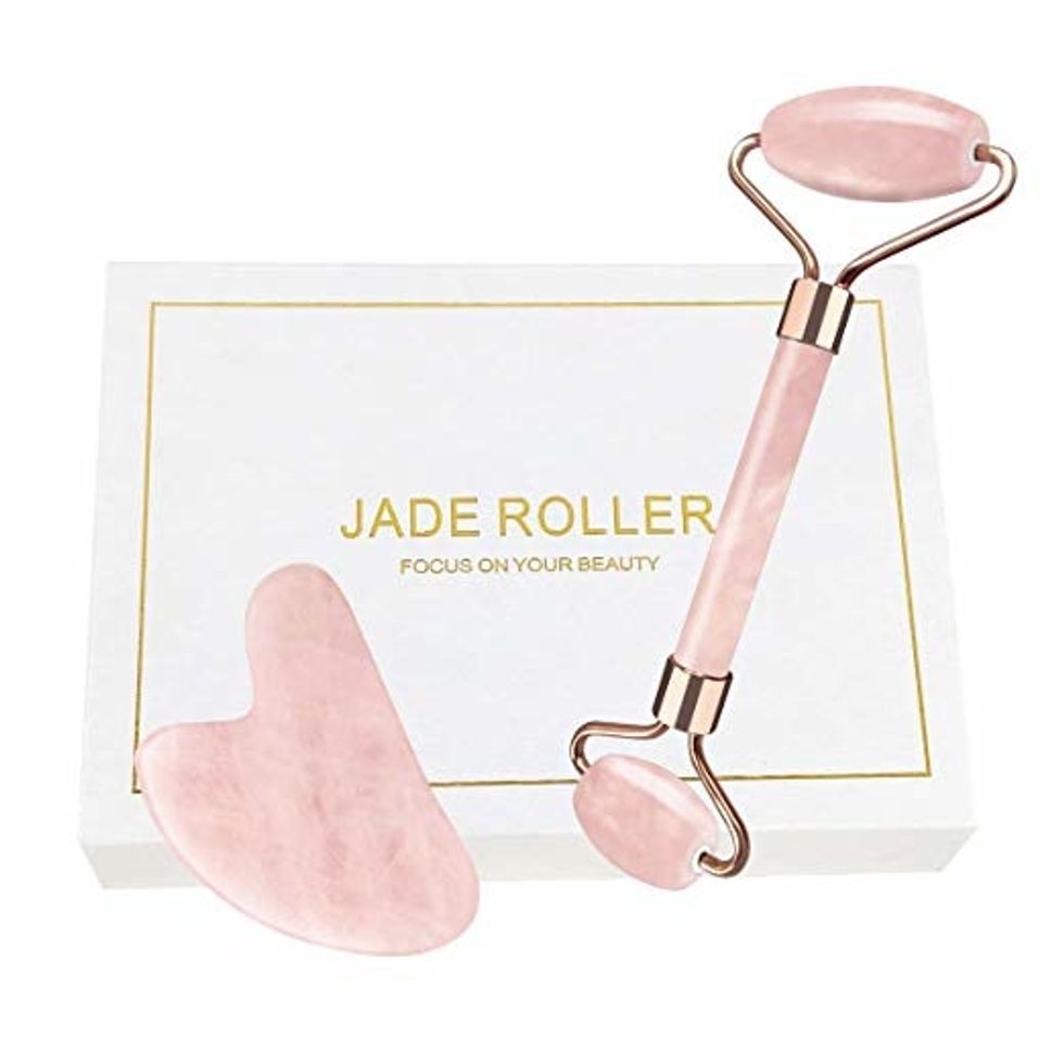 Jade Roller and Gua Sha Set - Rose Quartz Facial Massage Roller with Gua Sha Scraping Tool