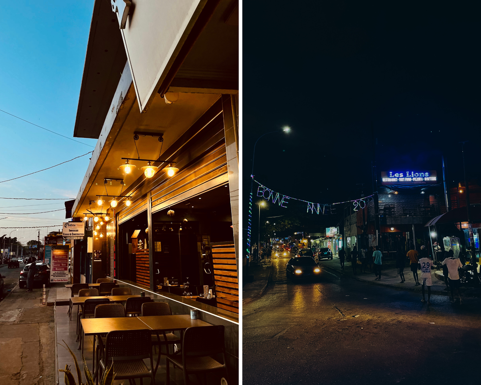 Although we spent a good chunk of our time in Saly indoors rejuvenating, we eventually ventured out to take a walk and feel the pulse of the city center. Neon lights and signs wishing people a happy holiday told us that this is a city that really values the people that it welcomes.