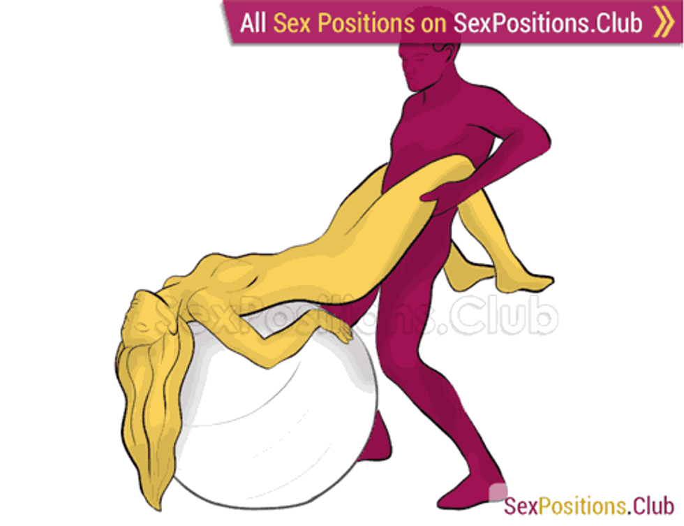 Don't shoot the messenger but we won't even hold you — this position is for the limber ladies. This position was created with a doorway in mind so you'll want to find one for maximum support. In a slight crouching position, you want to face inward towards your partner, back towards the door. Your partner will then straddle your legs (one on each side of their waist) and lean into the doorway, making a slight angle. With their support keeping you balanced, you will throw your leg onto your partner's shoulder steadying yourself with your one leg. Your partner should hold your waist and you can place your hands over theirs to offer more stability.