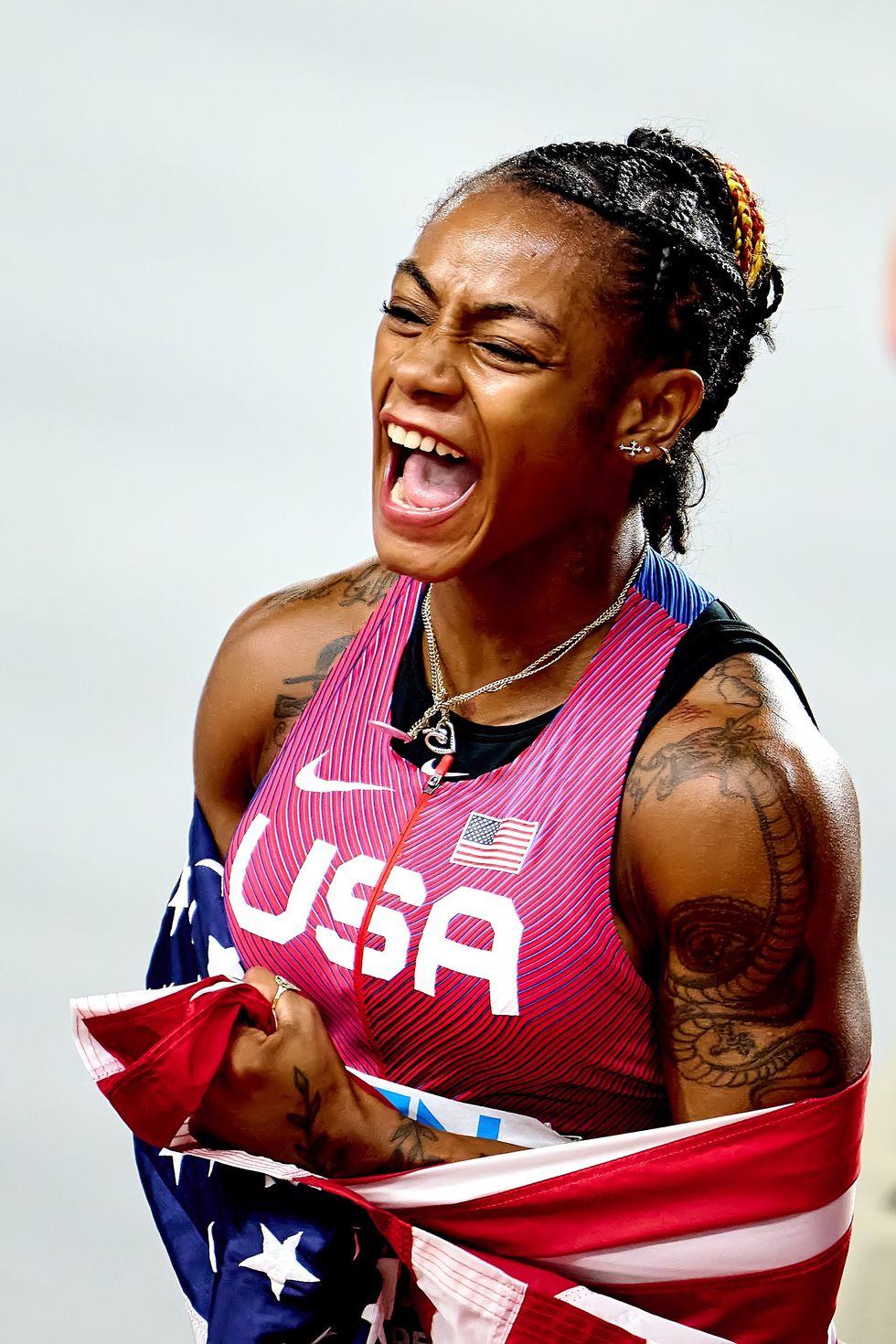 Sha’Carri’s triumphant win is a huge feat for the former LSU star, especially after facing a tumultuous two years. The Texan’s name has been on our lips since she won at the Olympics trials in June 2021. From her long flowy orange hair, long extravagant nails, and fearless attitude, she instantly became a household name.