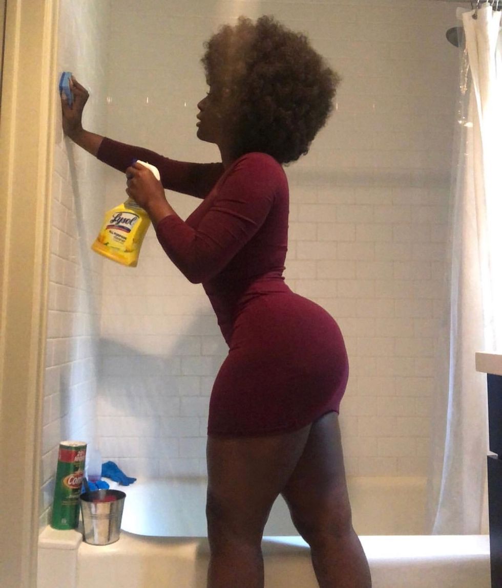 Recently, the entertainer posted a photo on Instagram that showed her in a bodycon dress cleaning the shower with the caption: