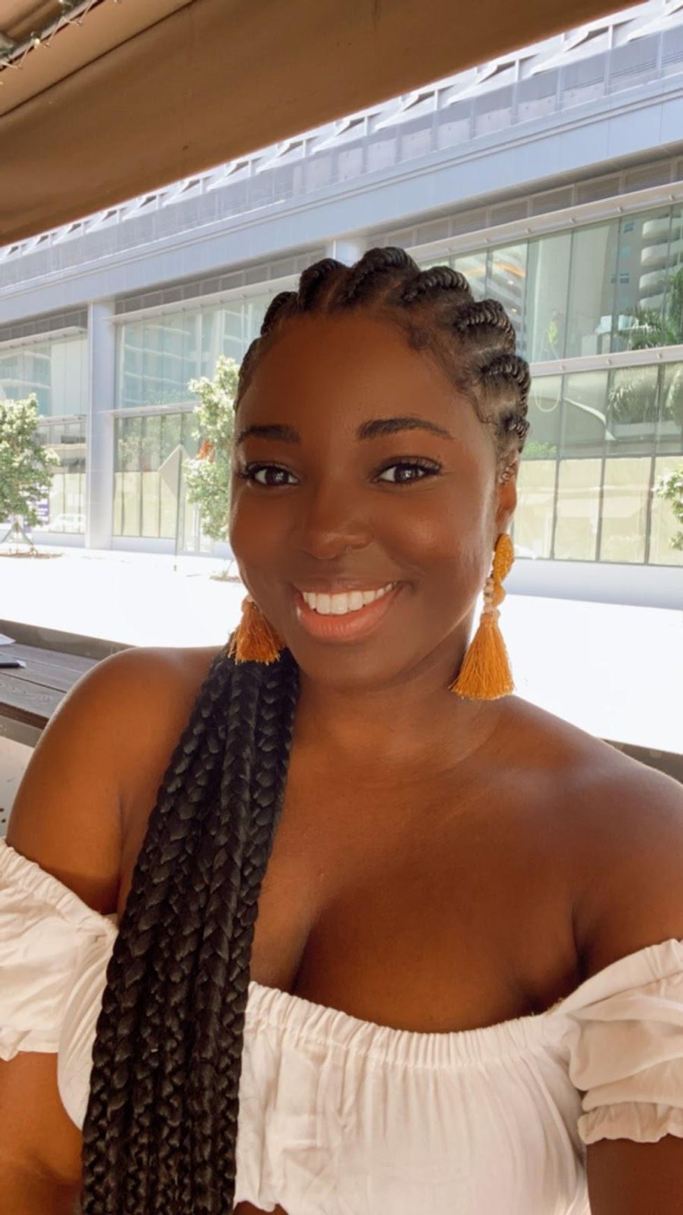 Not only did Nhyira abuse us with her melanin but she also snatched all of our edges with this knotless braids style. Knotless braids are one of the most popular braid styles with its convenience and flexibility. Because it does not include the small knot that starts at the root like traditional box braids, they don't put as much tension and stress on your hair. This queen went for a classic half up-half down style and it is perfection.